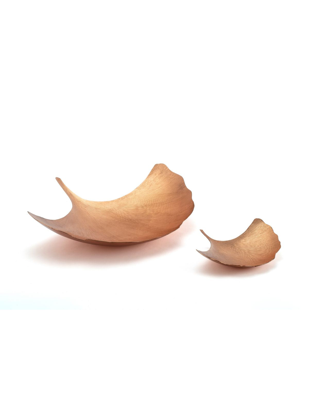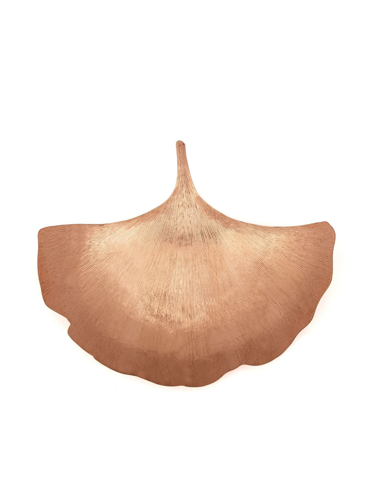 Ginkgo leaf platter is inspired from the ginkgo leaves. Ginkgo is highly unusual nonflowering plants. The organic form of this platter is the key highlighting feature of this product. This handcrafted, piece shows the detailing of the veins and the skill of the metal artisan. It is made in copper, using our age old nakashi craft. Nakashi Craft is one of the most detailed and time consuming craft. Ginkgo leaf platter serves the purpose of fruit bowl, serve ware, etc.