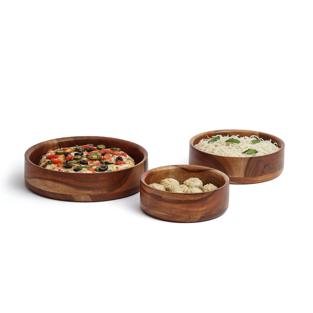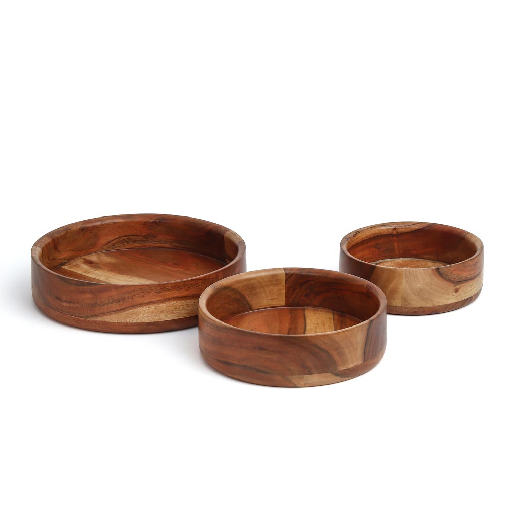 Embrace the exquisite beauty of the Hugh Fringe bowls - a charming trio of solid wood serving bowls that elevate any dining experience. These versatile bowls are ideal for a variety of occasions, perfect for serving everything from delectable dry snacks to refreshing salads. The natural finish of the bowls amplifies the natural grain of the wood, showcasing the exceptional craftsmanship of our skilled artisans. With their unique fringed edges and alluring textures, the Hugh Fringe bowls are a true testament to the art of woodworking.