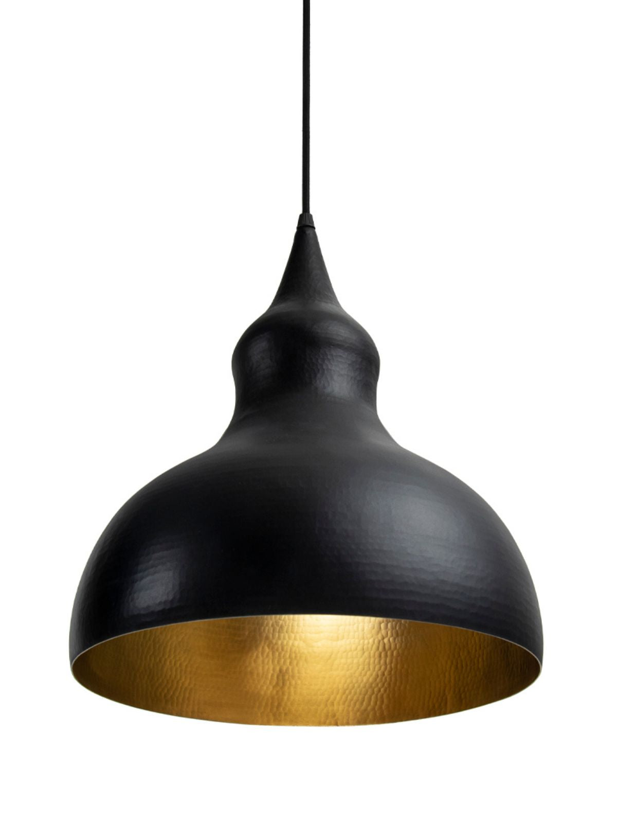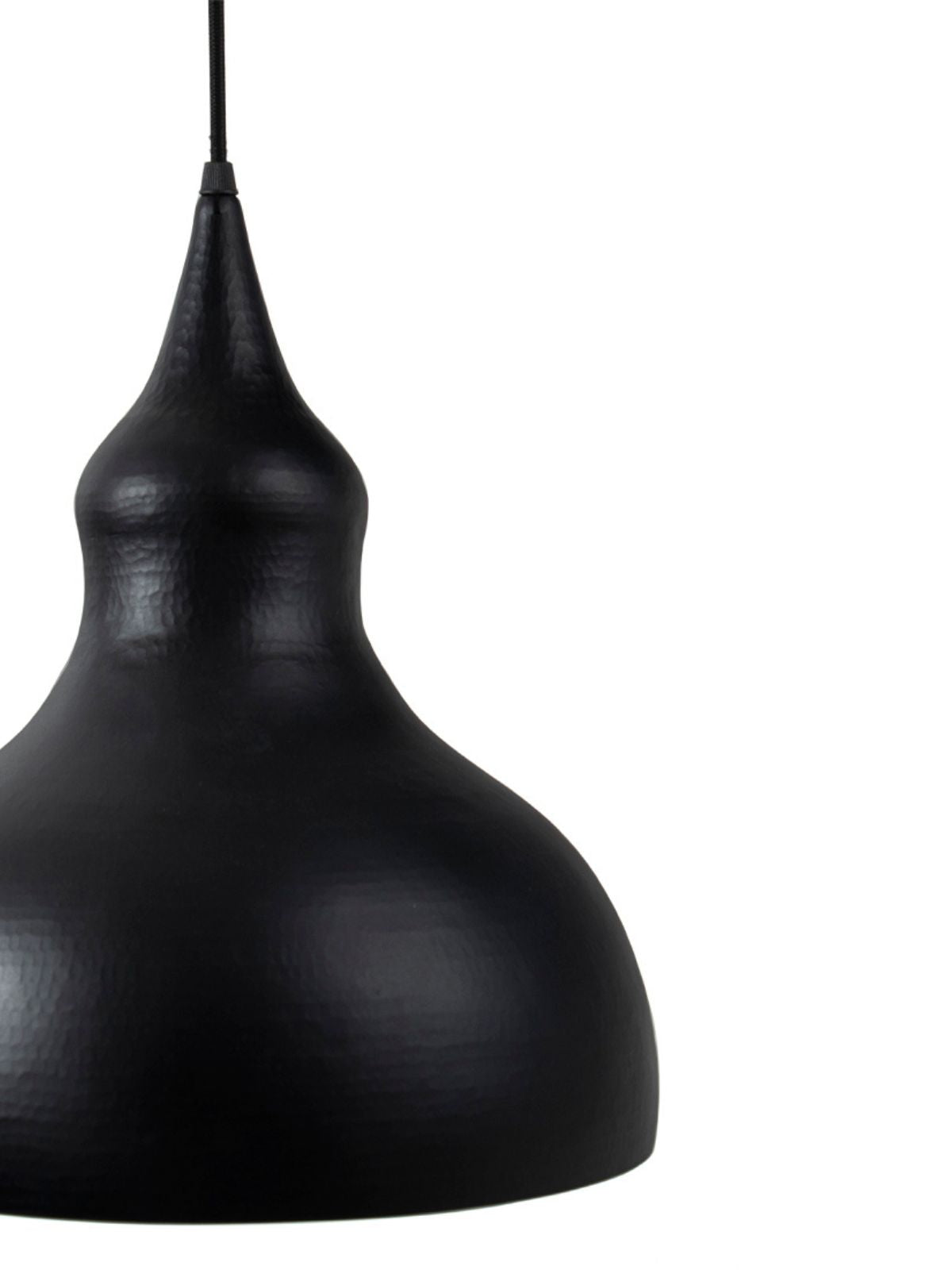 In Shimla pear is also know as Tumba. Tumba pendant light is inspired from the organic form of pear. The outer surface of the fruit is smooth as compared to the inner surface. Keeping this in mind er have chosen the same finishing process for our Tumba pendant light. The outer surface is smooth with antique matt black surface finish whereas the inner surface is hammered pattern by thathera craft (metal beating) of Jaipur. The accent light is a statement piece for any areas that need s your personal feel and aesthetics.