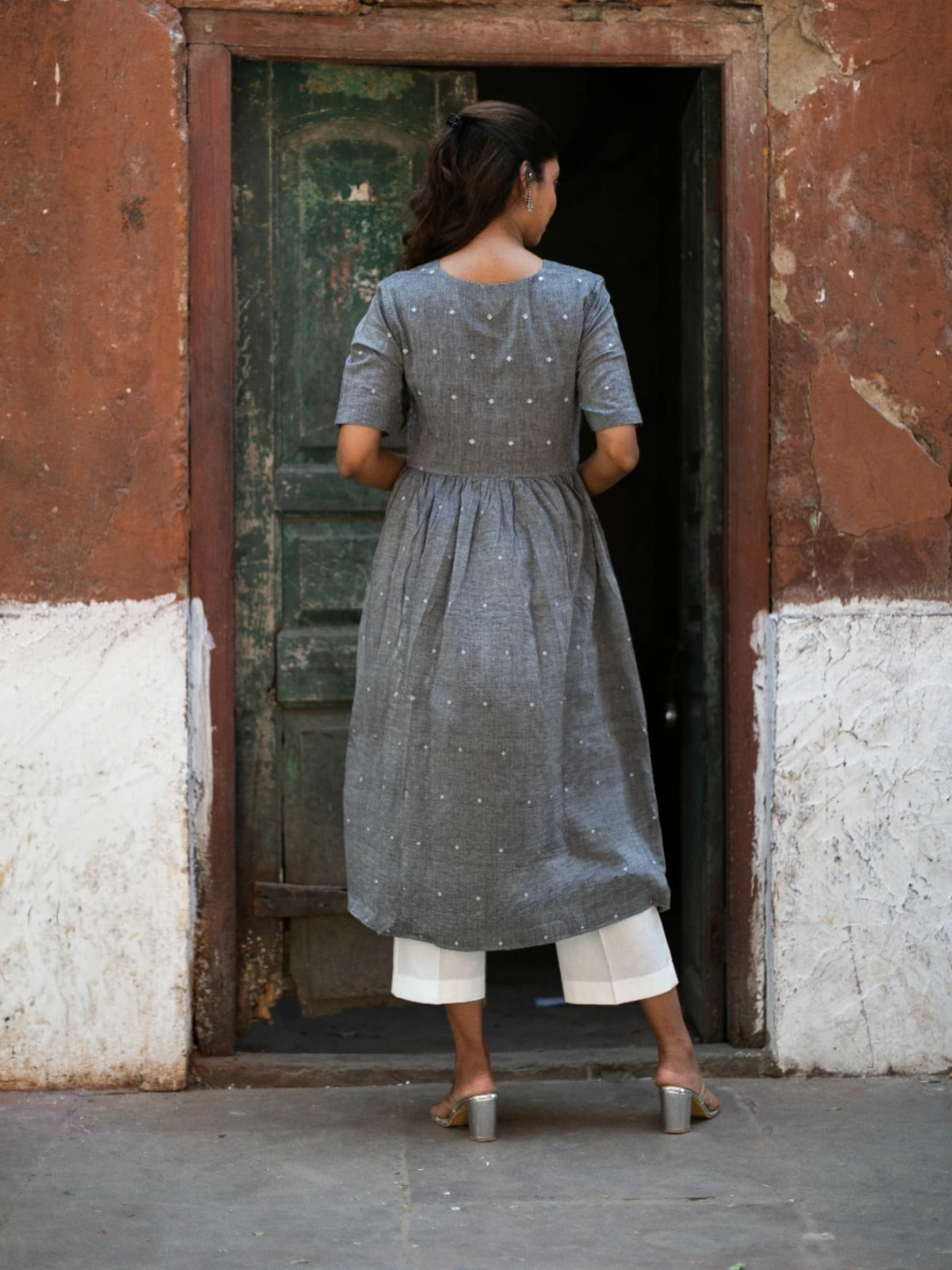 Grey Soft Cotton Jamdani Kurta Set showcases intricate handwoven detailing in a refined grey tone. Crafted from breathable cotton for all-day comfort, it blends traditional artistry with modern elegance. A versatile ensemble, perfect for casual outings or special occasions, it adds understated sophistication to your wardrobe.