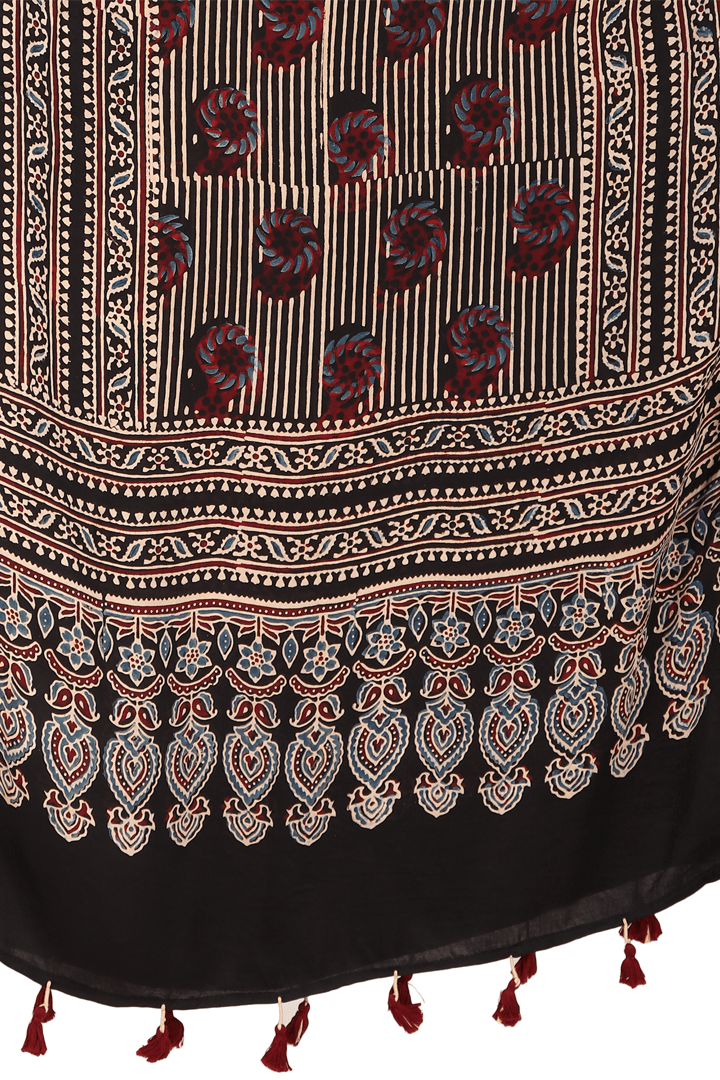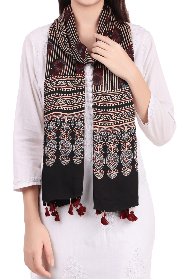 Introducing our exquisite collection of Ajrakh block-printed stole, a true celebration of traditional artistry and vibrant craftsmanship from the Khatris of Kutch, Gujarat.