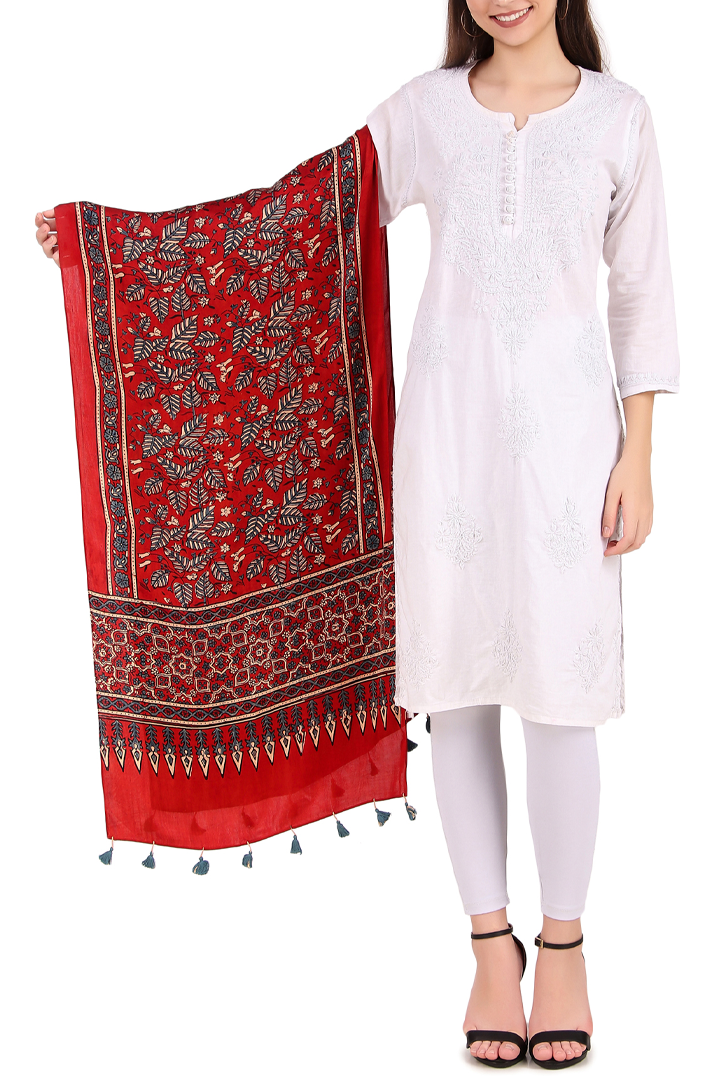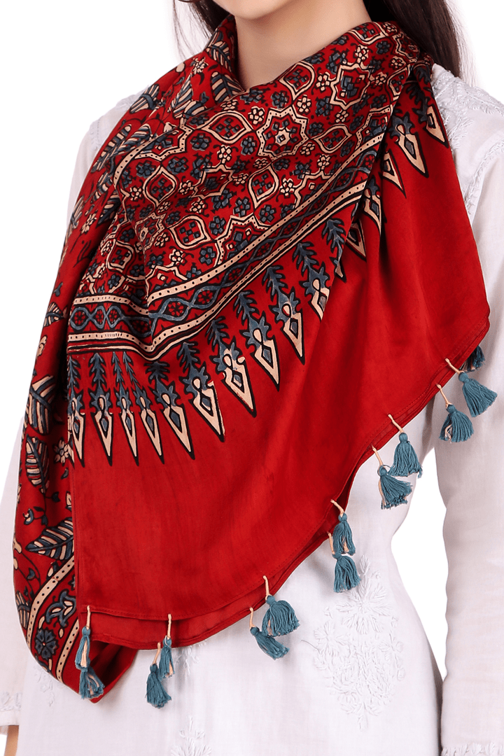Introducing our exquisite collection of Ajrakh block-printed stole, a true celebration of traditional artistry and vibrant craftsmanship from the Khtaris of Kutch, Gujarat.