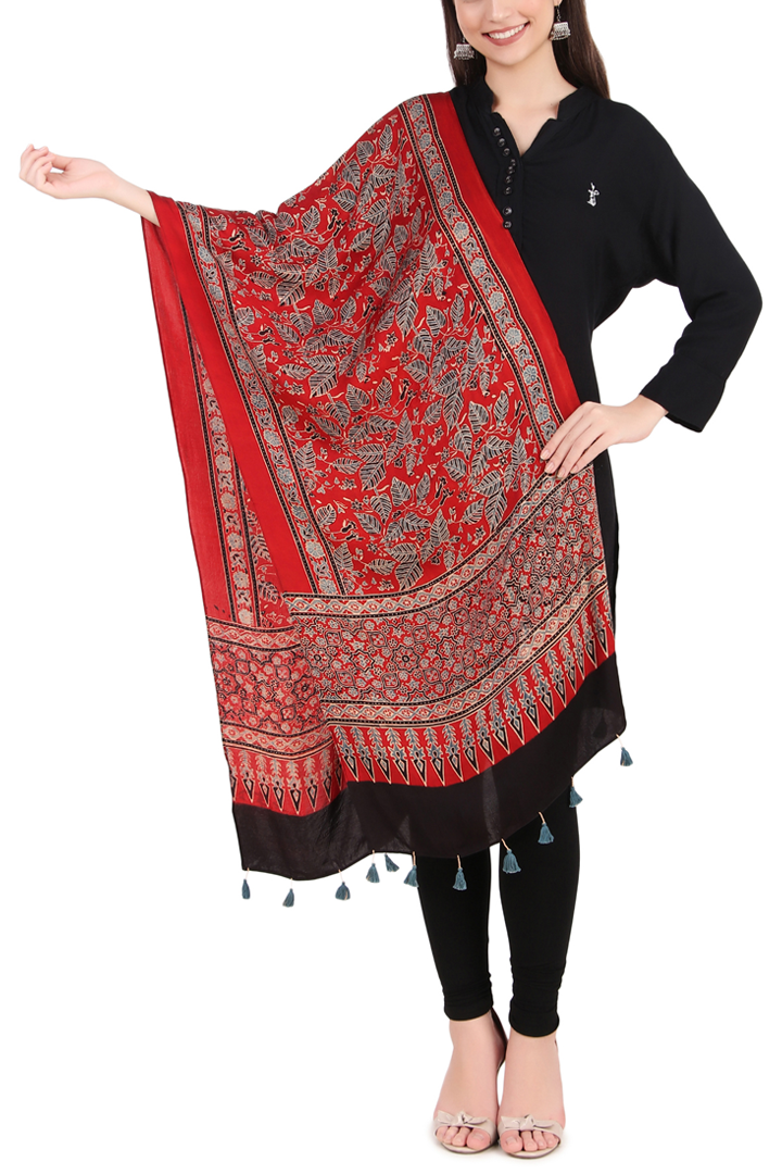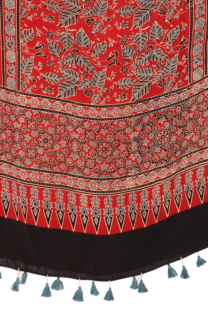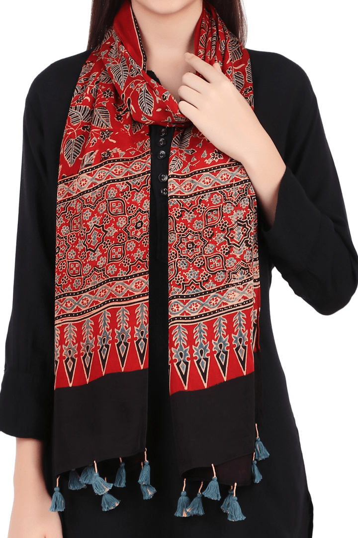Introducing our exquisite collection of Ajrakh block-printed stole, a true celebration of traditional artistry and vibrant craftsmanship from the Khtaris of Kutch, Gujarat.
