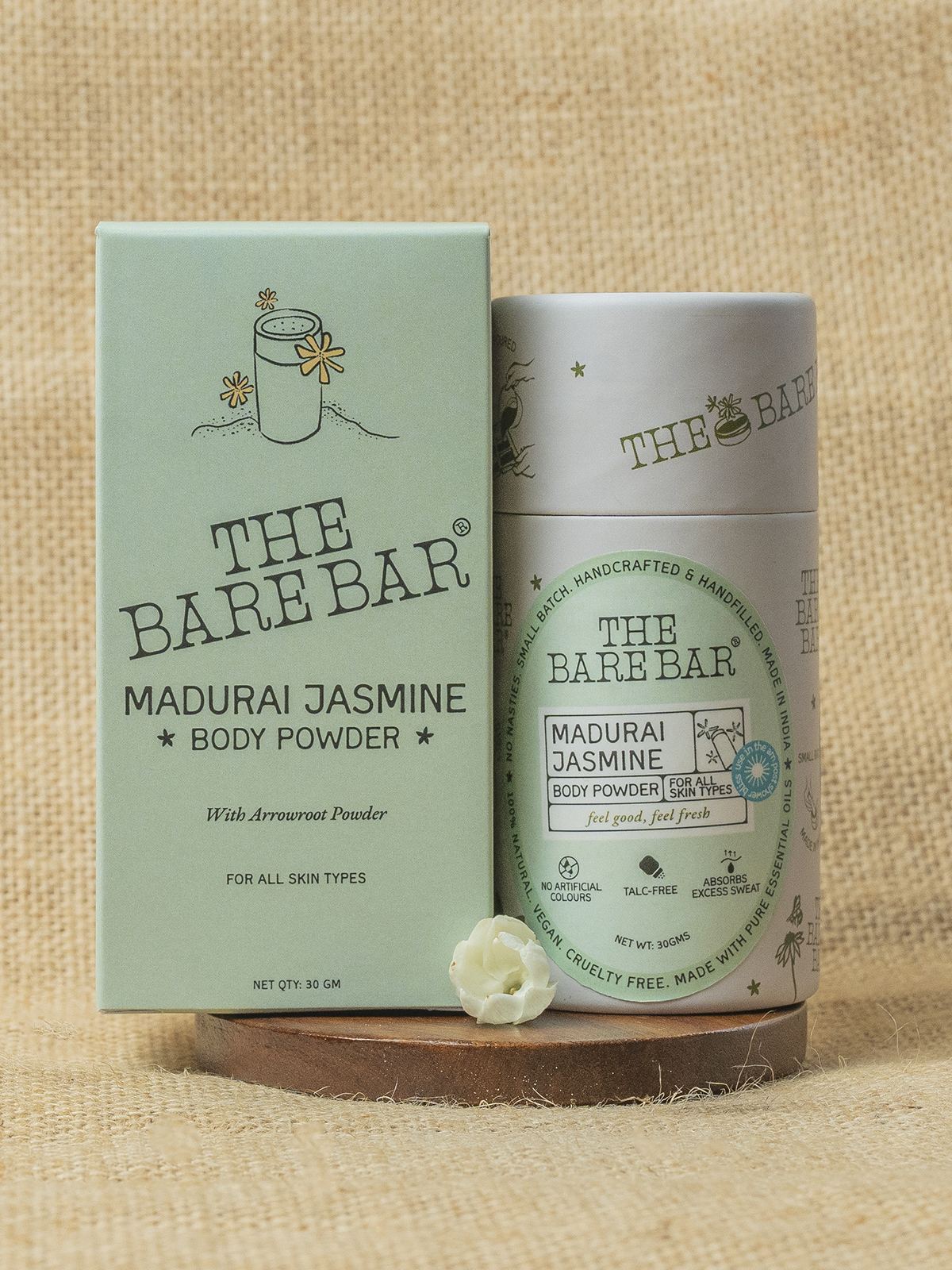 - Key Ingredients : Maranta arundinacea (Arrowroot) Powder, French Green Clay, Zea mays (Corn) Starch, Sodium Bicarbonate, Jasminum officinale (Jasmine) Essential Oil.
