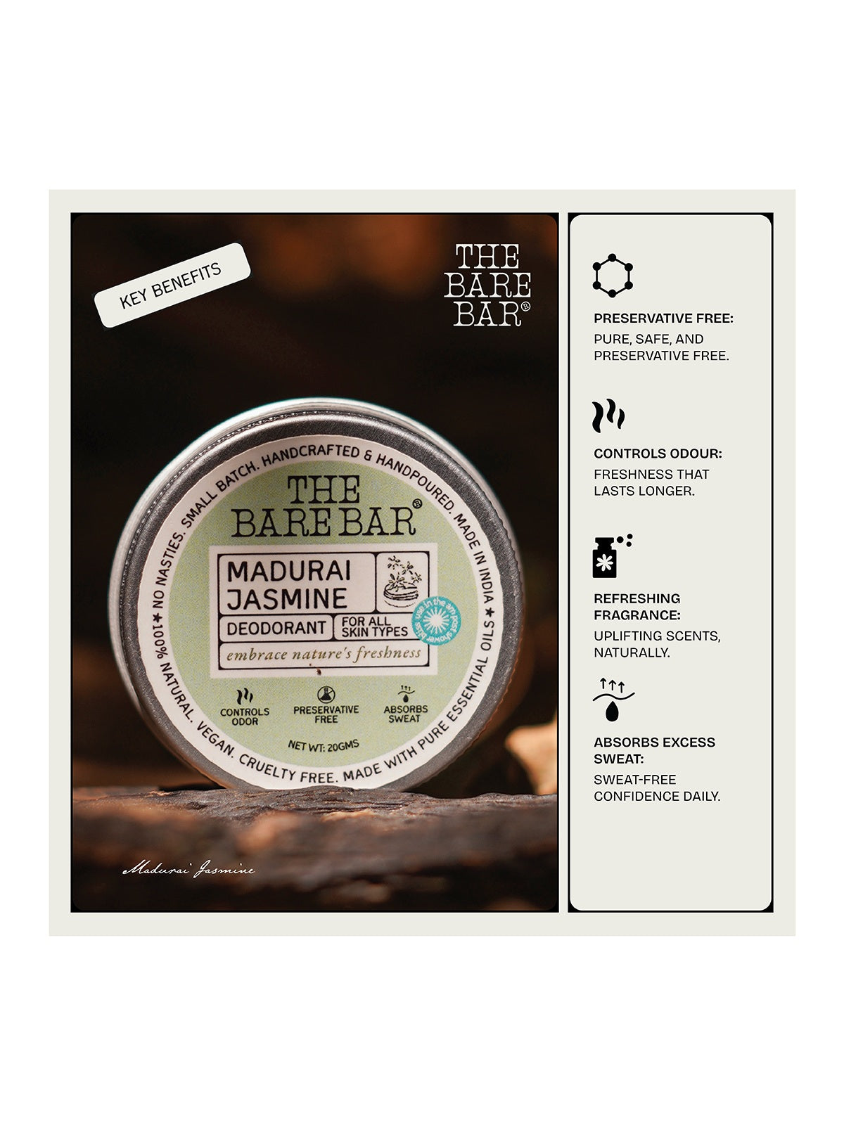 Indulge in the timeless elegance of jasmine with this natural deodorant. Gentle on skin yet effective, it offers long-lasting freshness with a sweet floral aroma—ideal for anyone who loves delicate, nature-inspired scents.