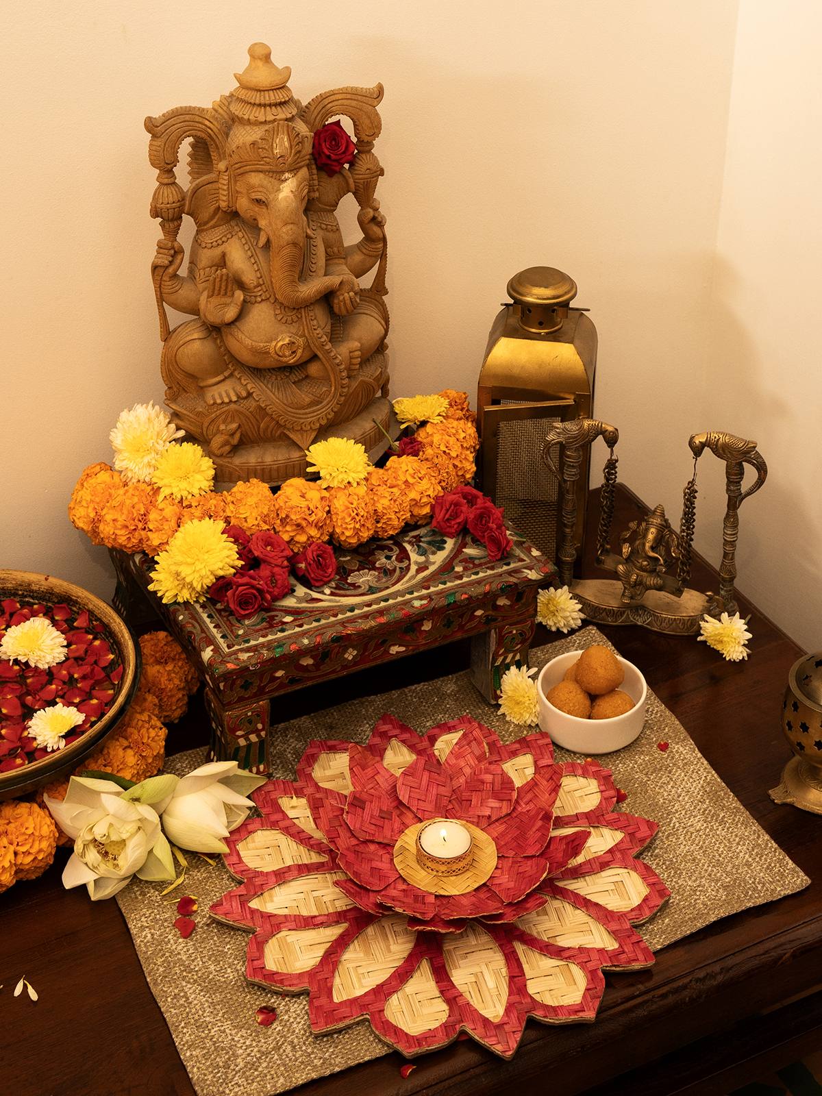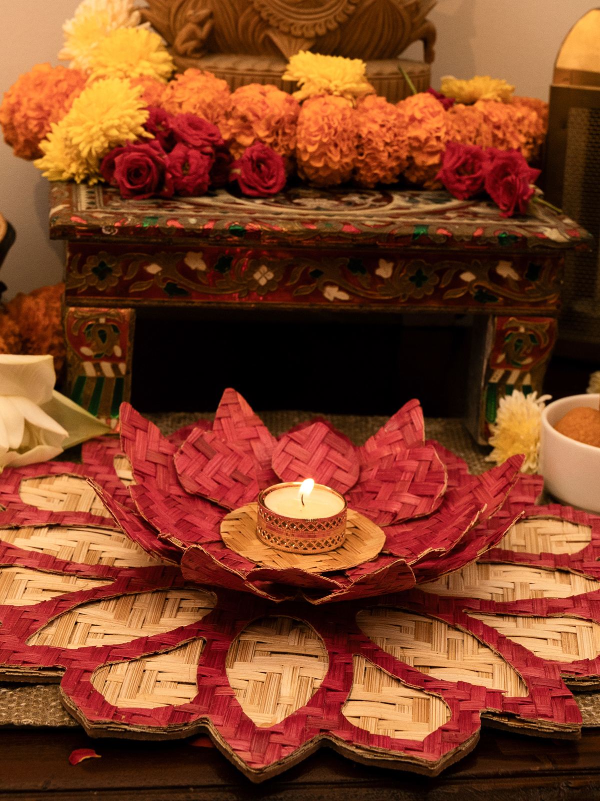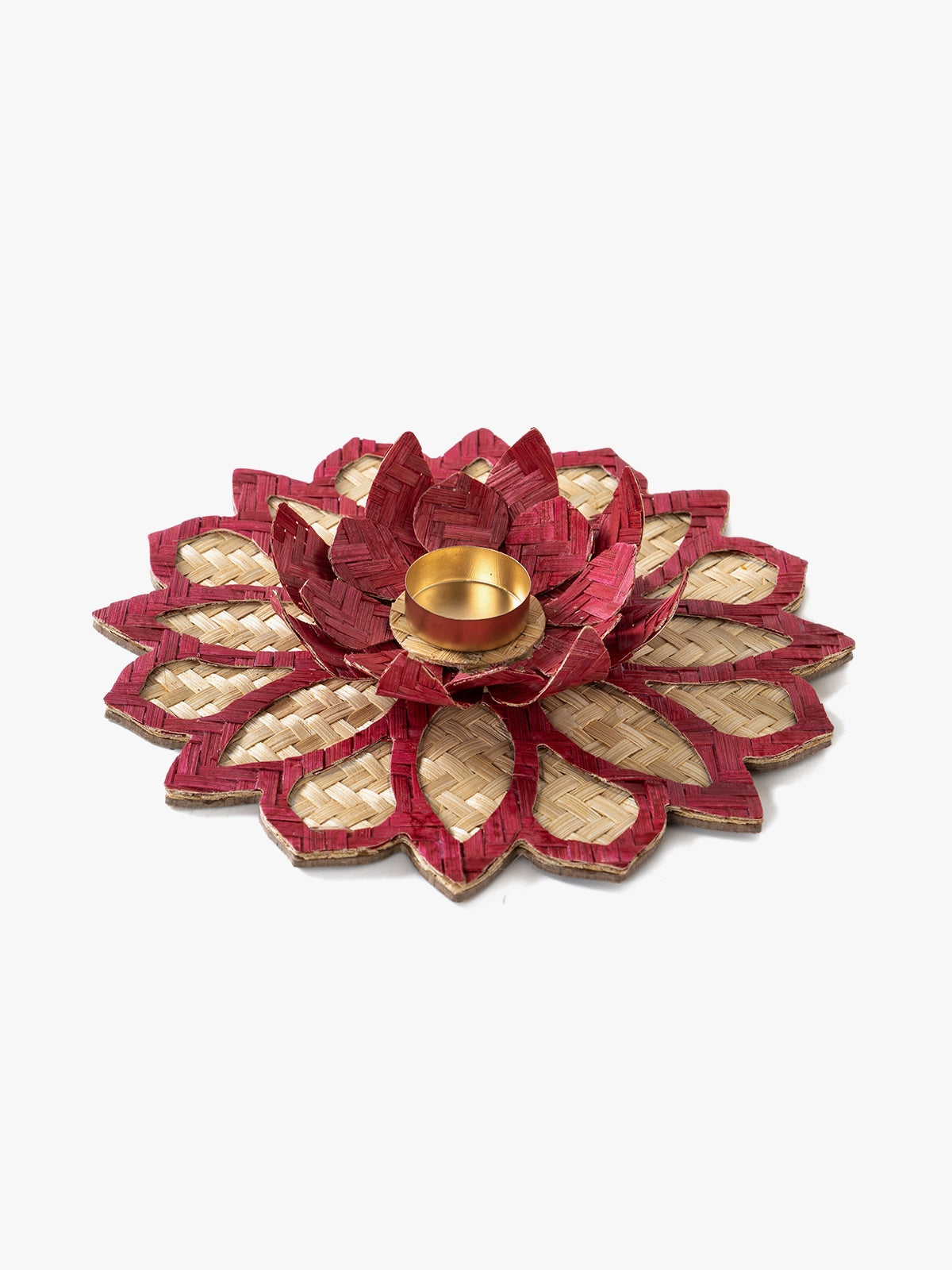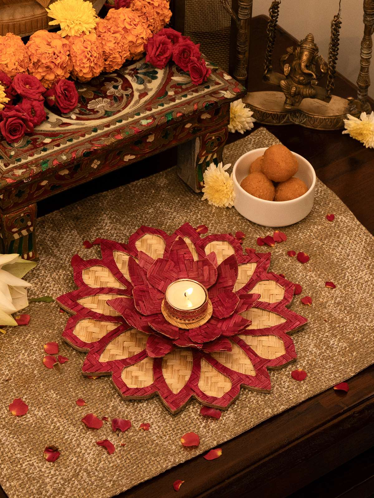 Handcrafted Bamboo Rangoli with Lotus Tea Light Holder