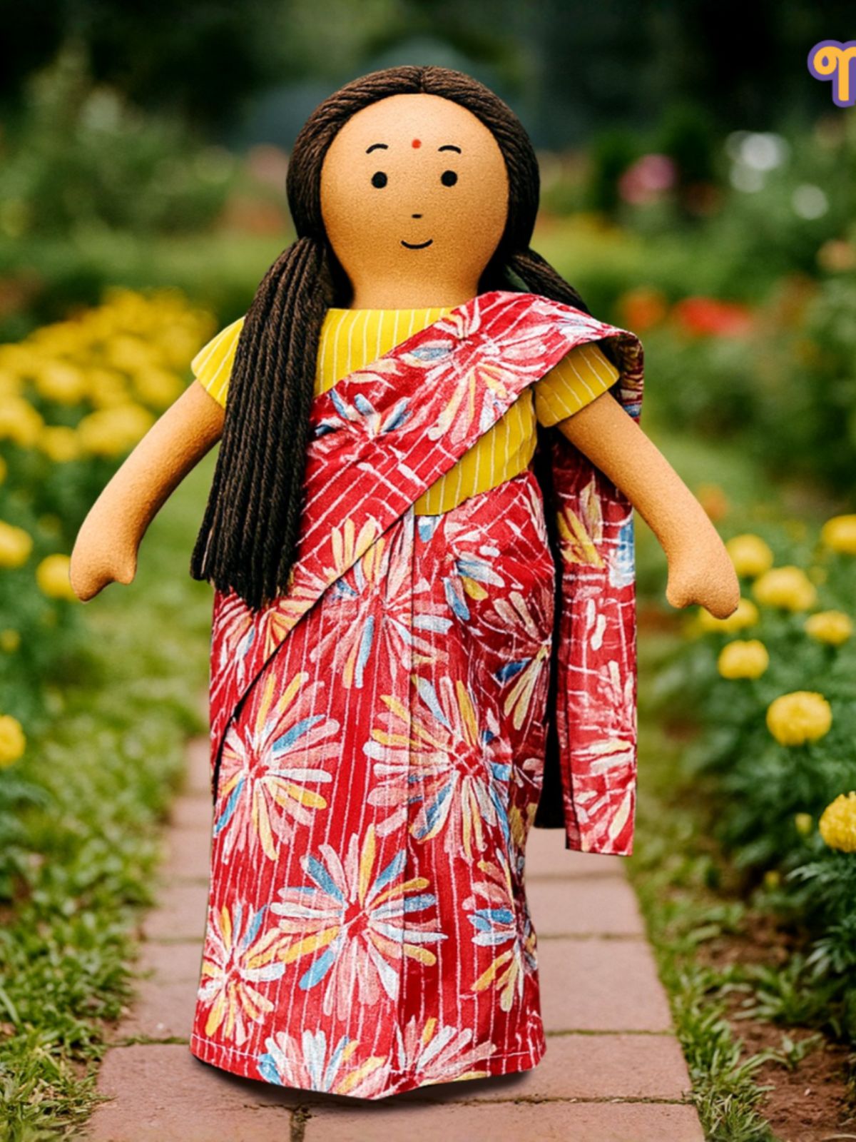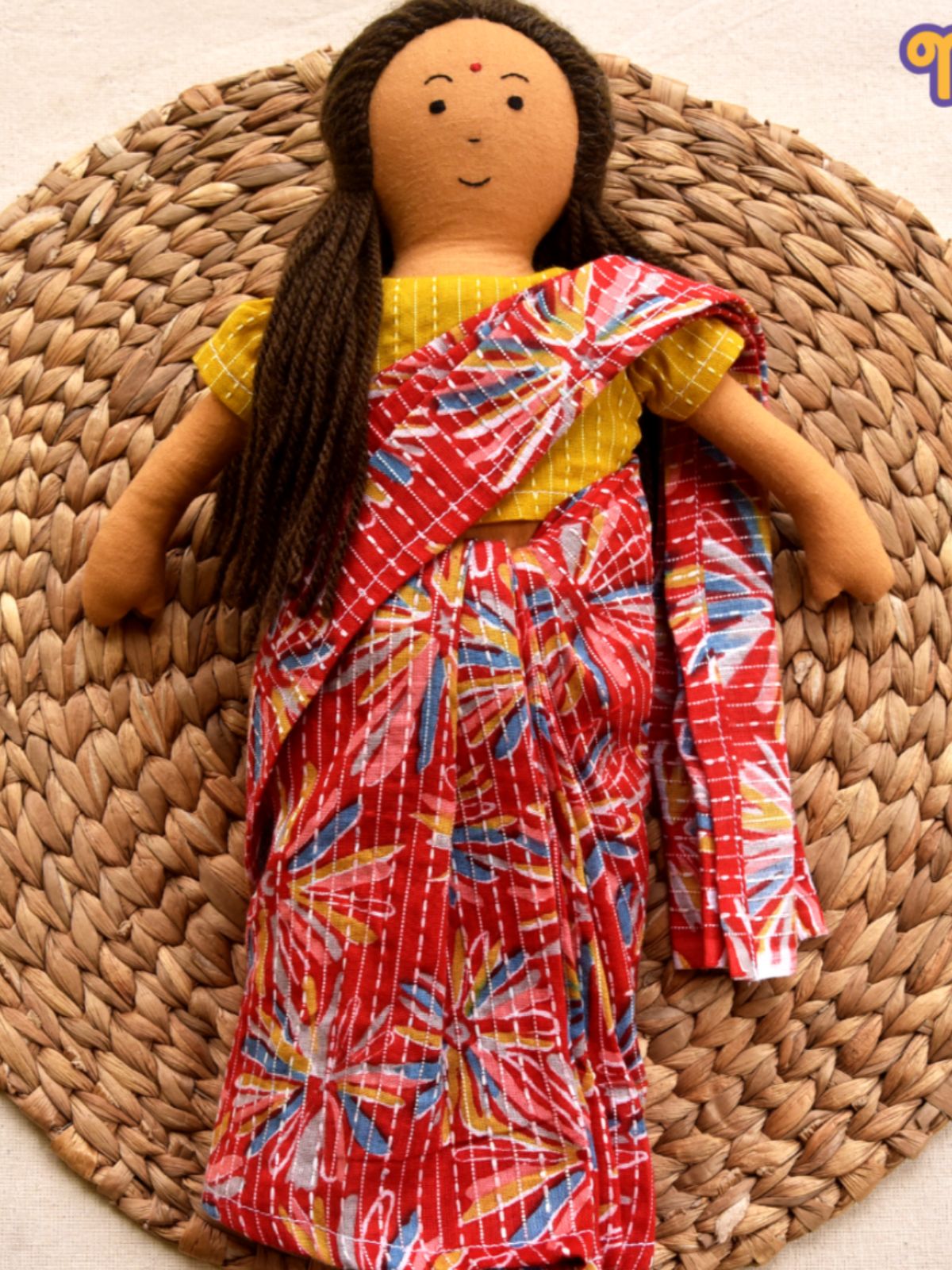 Introducing Nilah, a meticulously crafted fabric doll rooted in the rich heritage of India's Blue Mountains. Adorned in an elegant pink saree, she represents a celebration of inclusivity, body positivity, and cultural authenticity. Designed for longevity, both the doll and her interchangeable wardrobe are machine-washable and built to withstand everyday play, with simple home repairs extending her lifespan. Her hair invites creative styling, while her versatile garments encourage imaginative dressing. Presented in sustainable, eco-conscious packaging, Nilah serves as an exceptional gift that embodies the spirit of a determined yet compassionate young woman shaped by her mountain heritage.