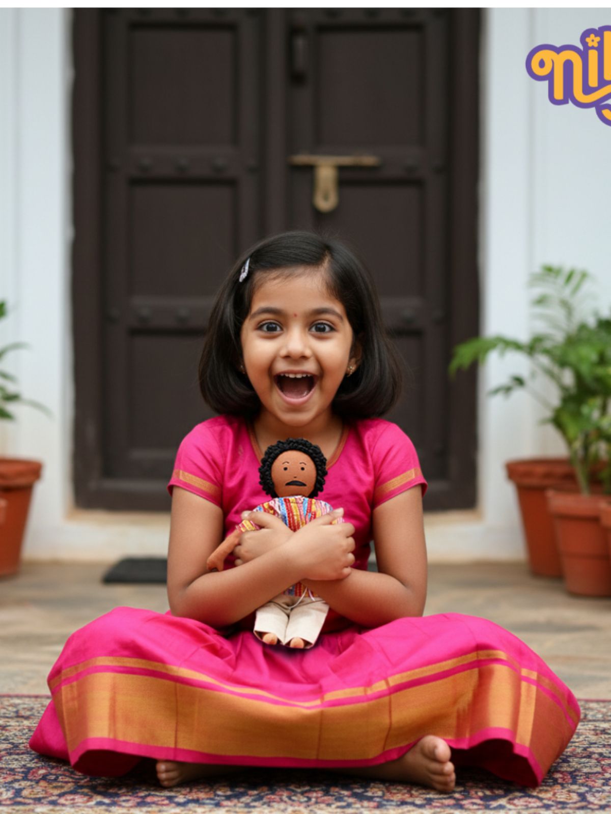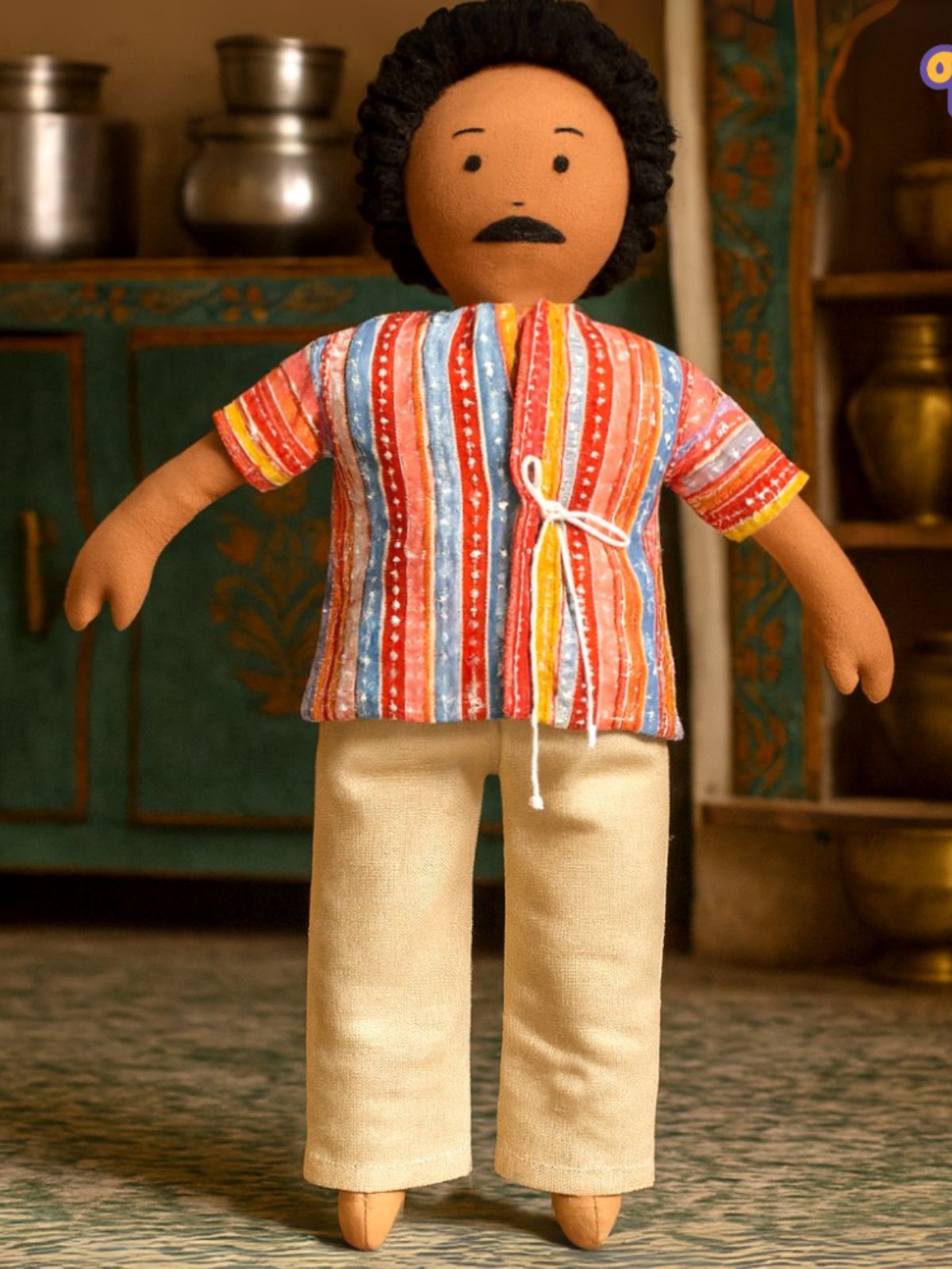 Nilah's Appa Boy Doll arrives thoughtfully packaged in an eco-conscious gift box, ready to delight. This handcrafted fabric companion features interchangeable garments and styleable hair, offering endless creative play. Both the doll and its clothing are fully washable and durable, designed to withstand regular use while remaining easy to care for. The construction allows minor wear to be simply repaired at home, ensuring longevity. Celebrating body positivity and colour inclusivity, this doll embodies the spirit of the Nilgiris—a fierce yet gentle character born from India's mystical Blue Mountains, where the rare Kurinji flower blooms once every twelve years.