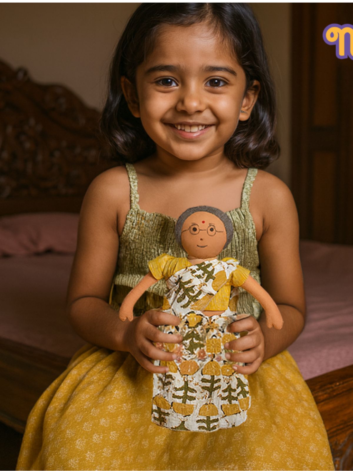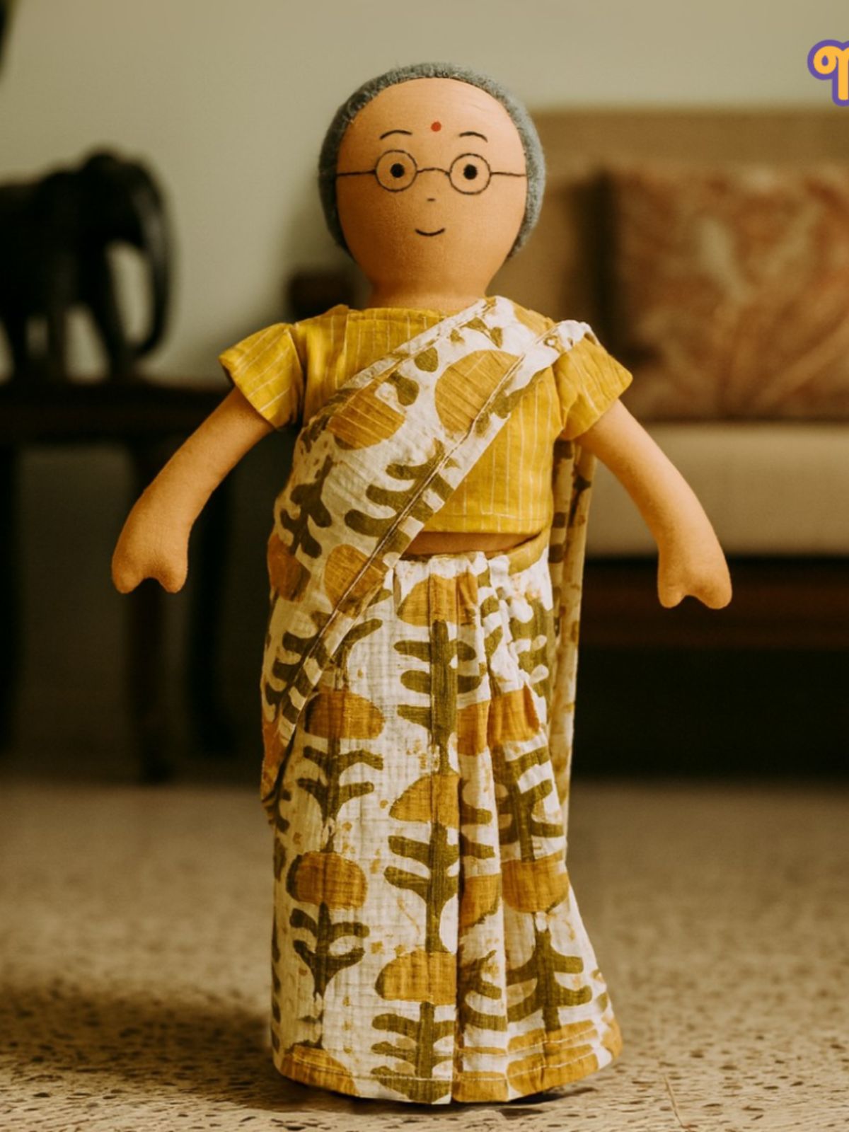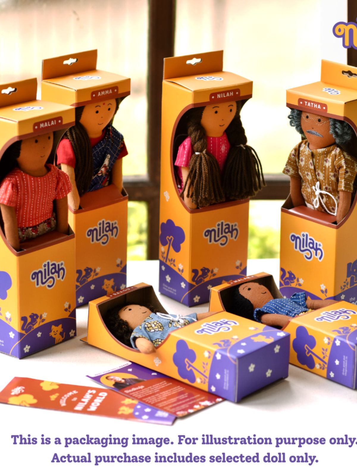 Meet Nilah, a handcrafted fabric doll inspired by the mystical Blue Mountains of South India. Dressed in a vibrant yellow saree, this thoughtfully designed companion celebrates body positivity and colour inclusivity. The doll and her garments are fully washable and easy to care for, with interchangeable clothing and styleable hair. Minor wear can be effortlessly mended at home, ensuring lasting companionship. Eco-conscious packaging makes her an ideal gift for those who appreciate artisanal craftsmanship and meaningful storytelling woven into every stitch.