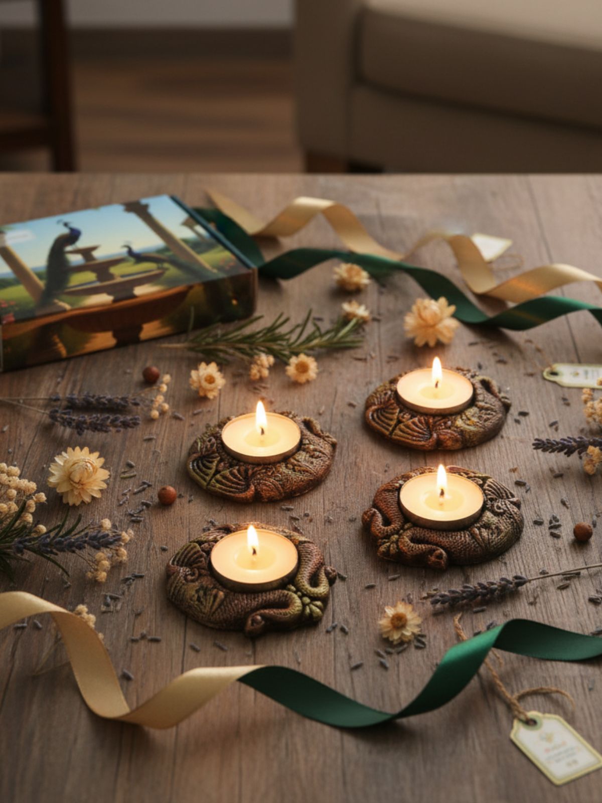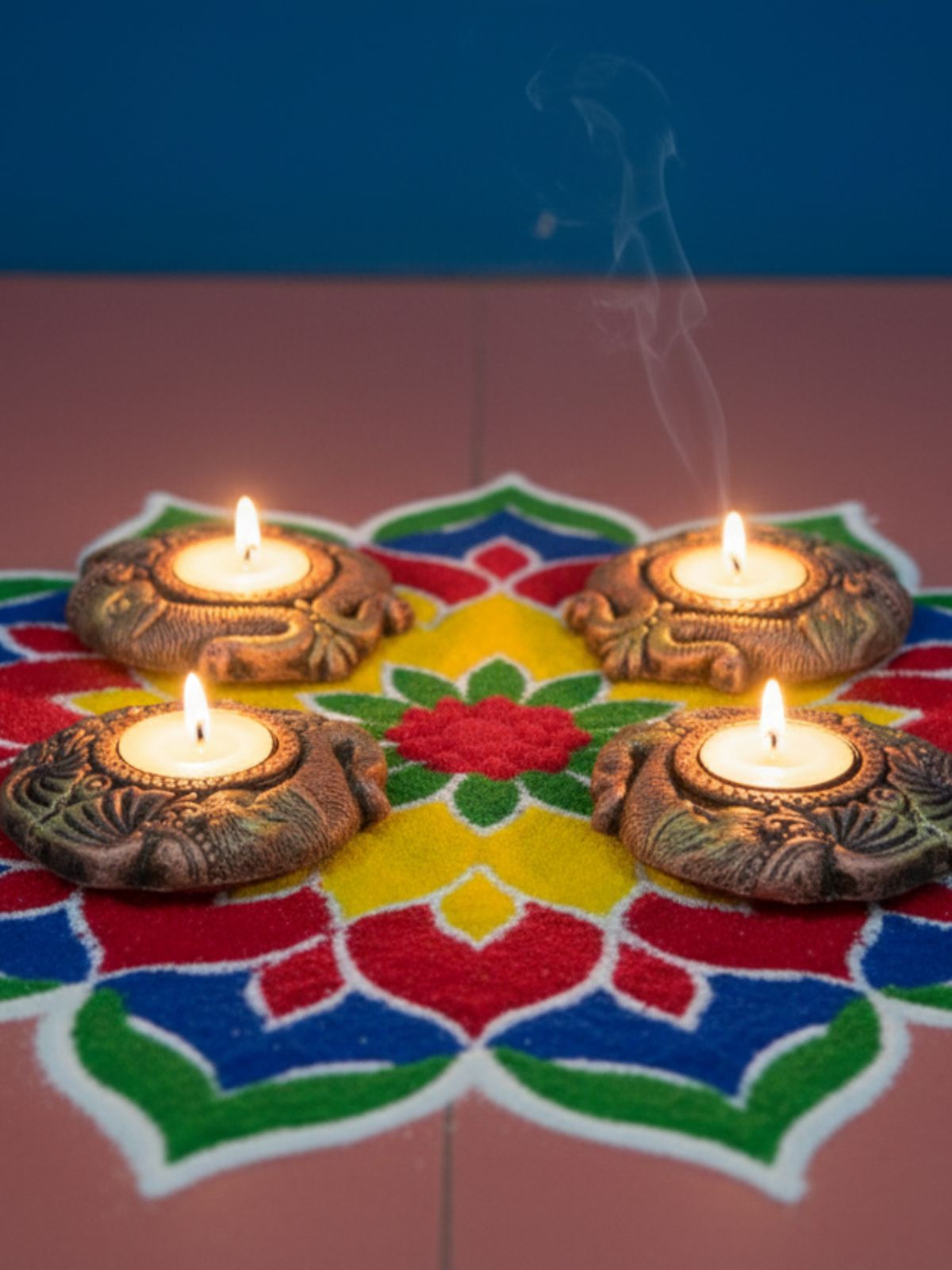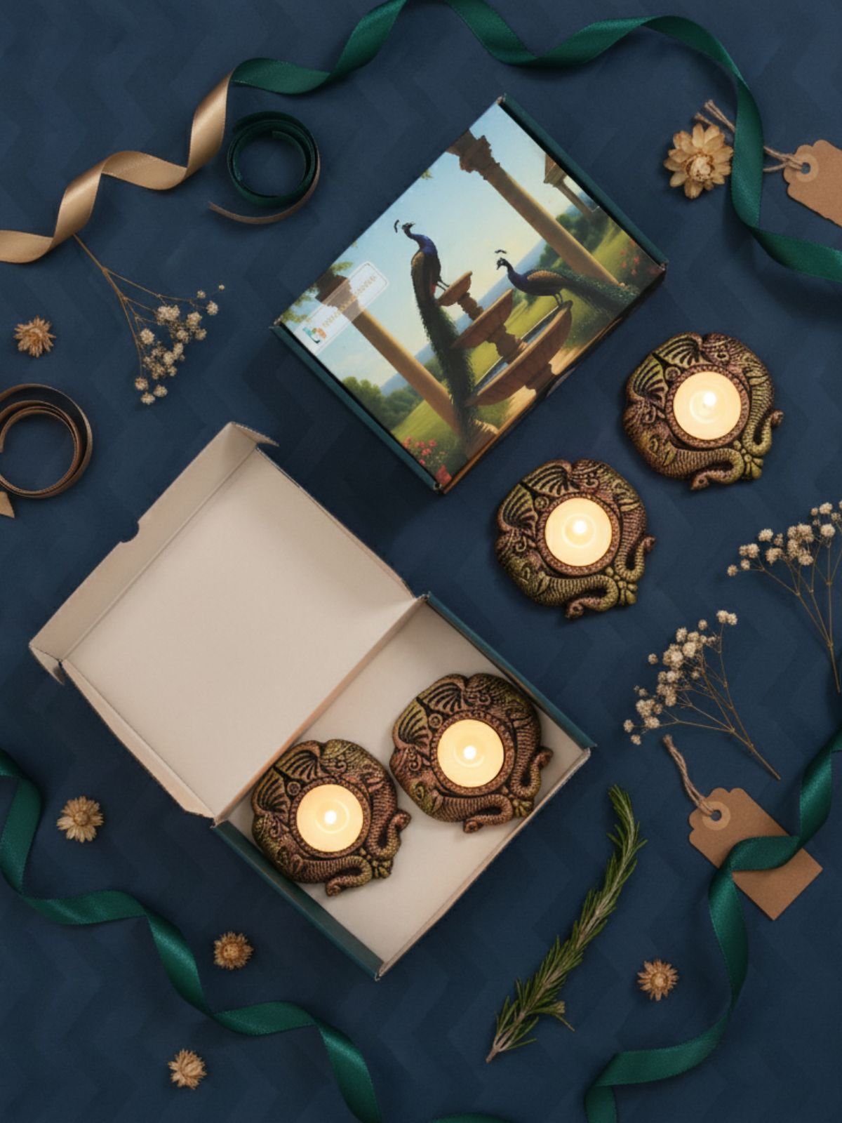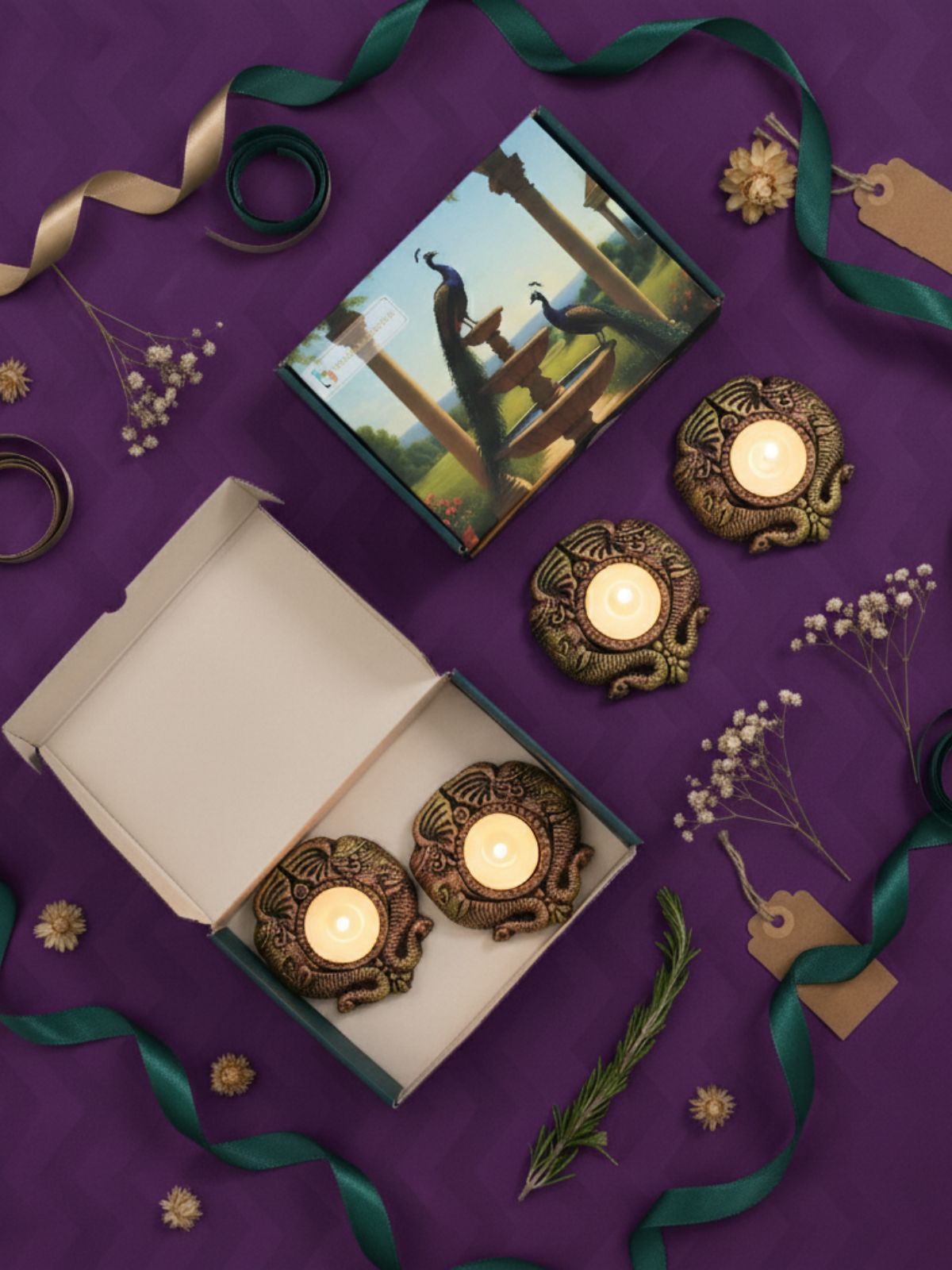 Each T light Candle holder is designed with fine detailing, making it not just a functional piece but also a decorative accent for your home. When lit, the soft glow of the T-light candles reflects beautifully off the intricate patterns, creating a warm and welcoming ambiance. Perfect for Diwali, weddings, puja ceremonies, or even as part of everyday décor, these candle holders transform any corner into a space filled with light and positivity.