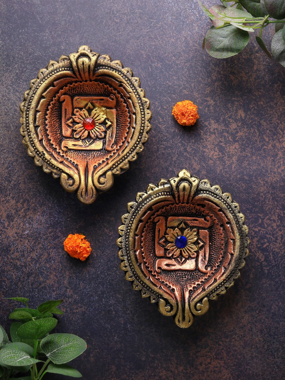 Celebrate heritage and light with this large Swastik-inspired terracotta diya set. Handcrafted with precision, each piece radiates a sacred warmth and festive charm. Elegant and sustainable, this duo makes a stunning addition to altars, tables, or ceremonial décor, reflecting timeless artistry and cultural symbolism.