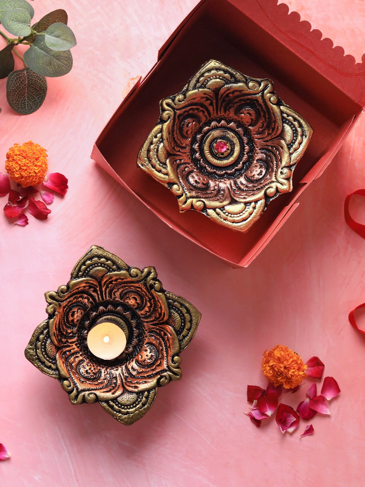 A timeless symbol of purity, this Lotus Akand Jyot is handcrafted in terracotta to radiate warmth and serenity. Its intricate design and sustainable craftsmanship make it perfect for altars, festive décor, or meditation spaces, offering a radiant, elegant centerpiece that celebrates tradition.