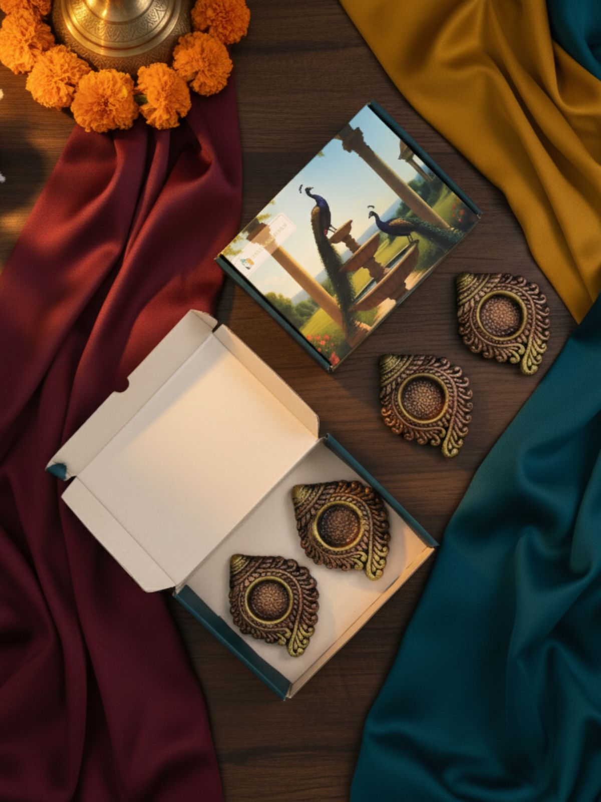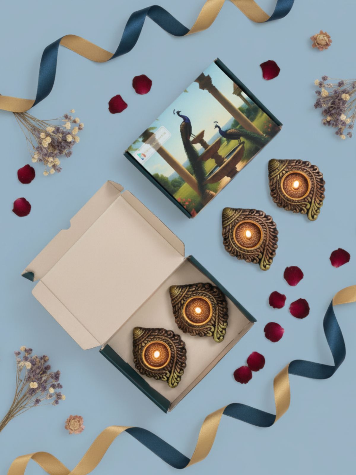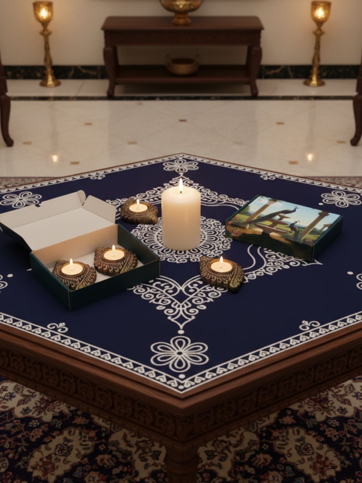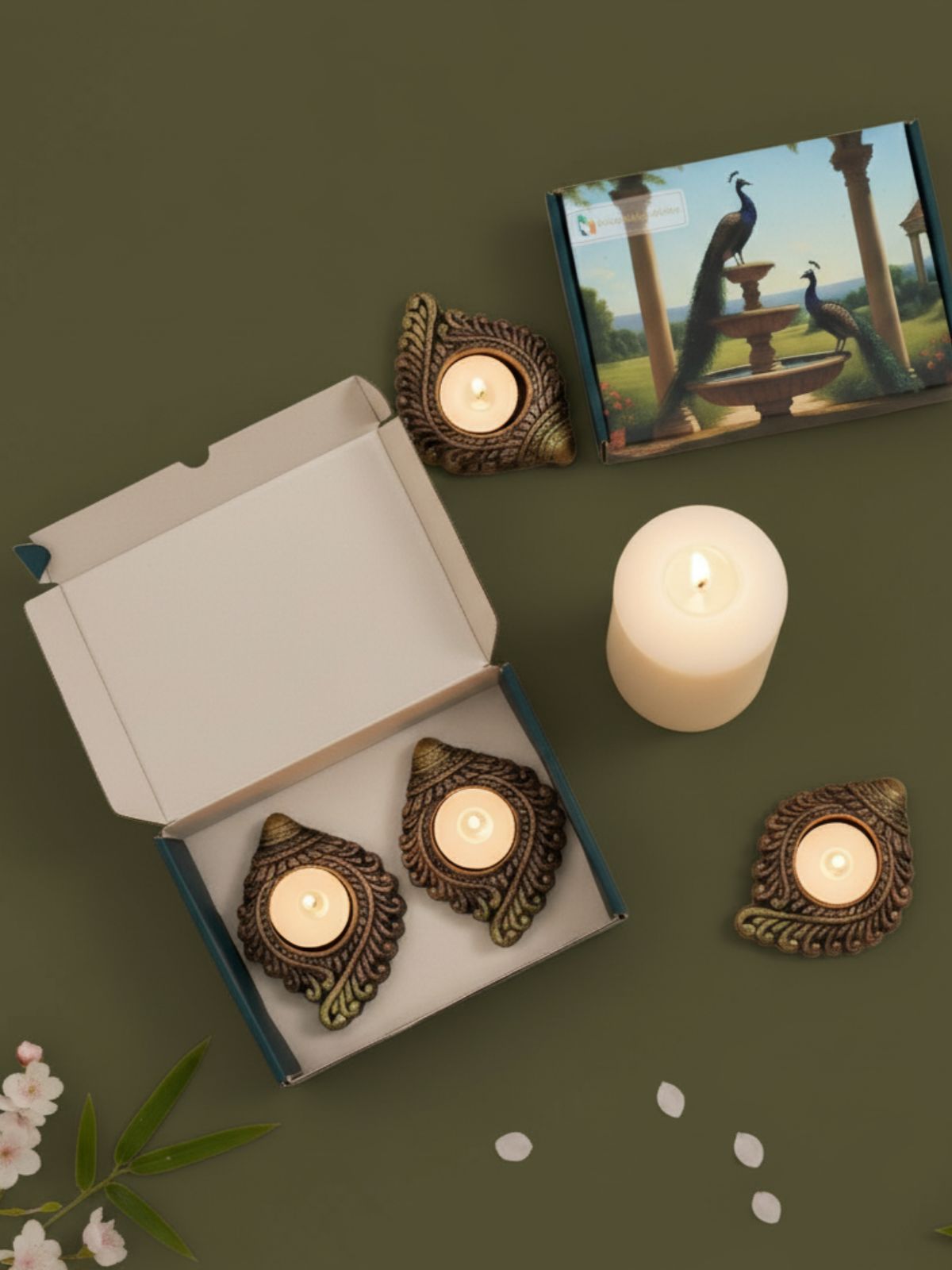 Each T light Candle holder is designed with fine detailing, making it not just a functional piece but also a decorative accent for your home. When lit, the soft glow of the T-light candles reflects beautifully off the intricate patterns, creating a warm and welcoming ambiance. Perfect for Diwali, weddings, puja ceremonies, or even as part of everyday décor, these candle holders transform any corner into a space filled with light and positivity.