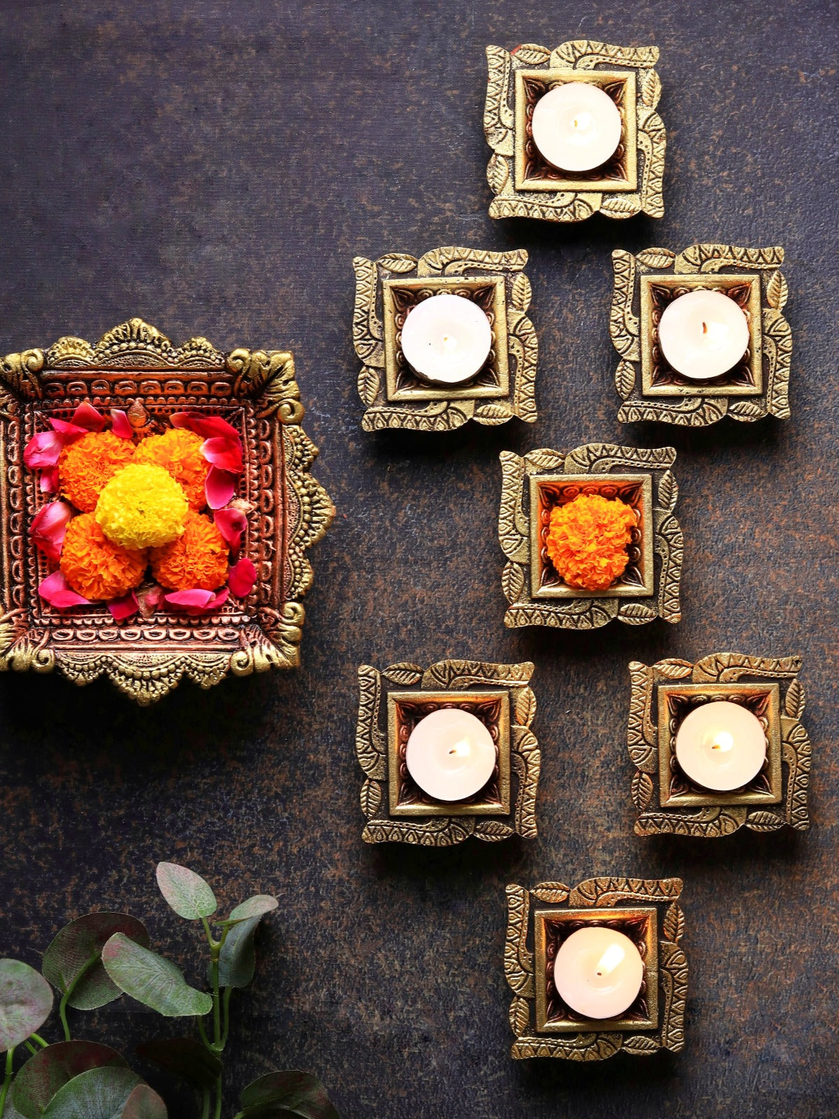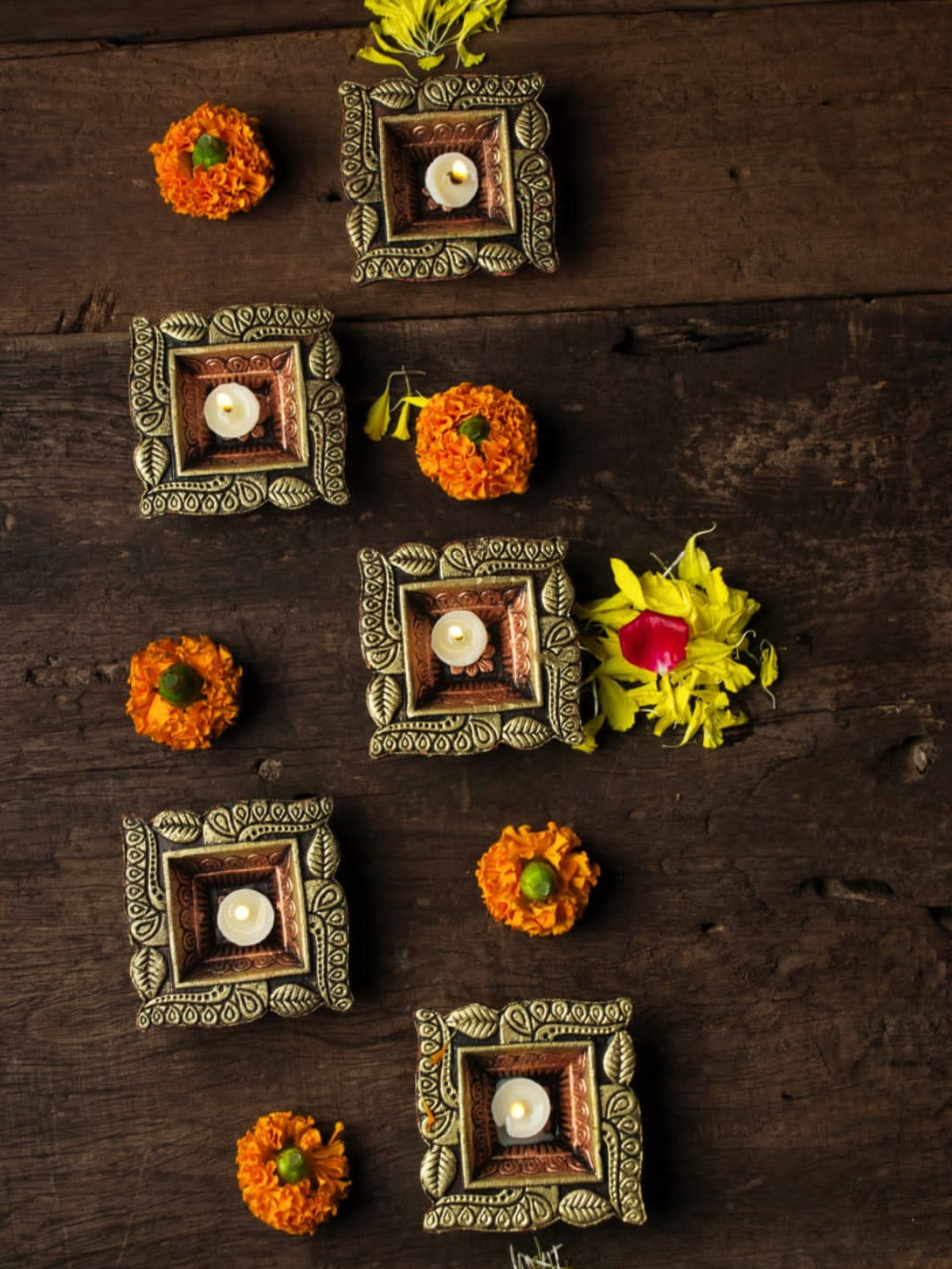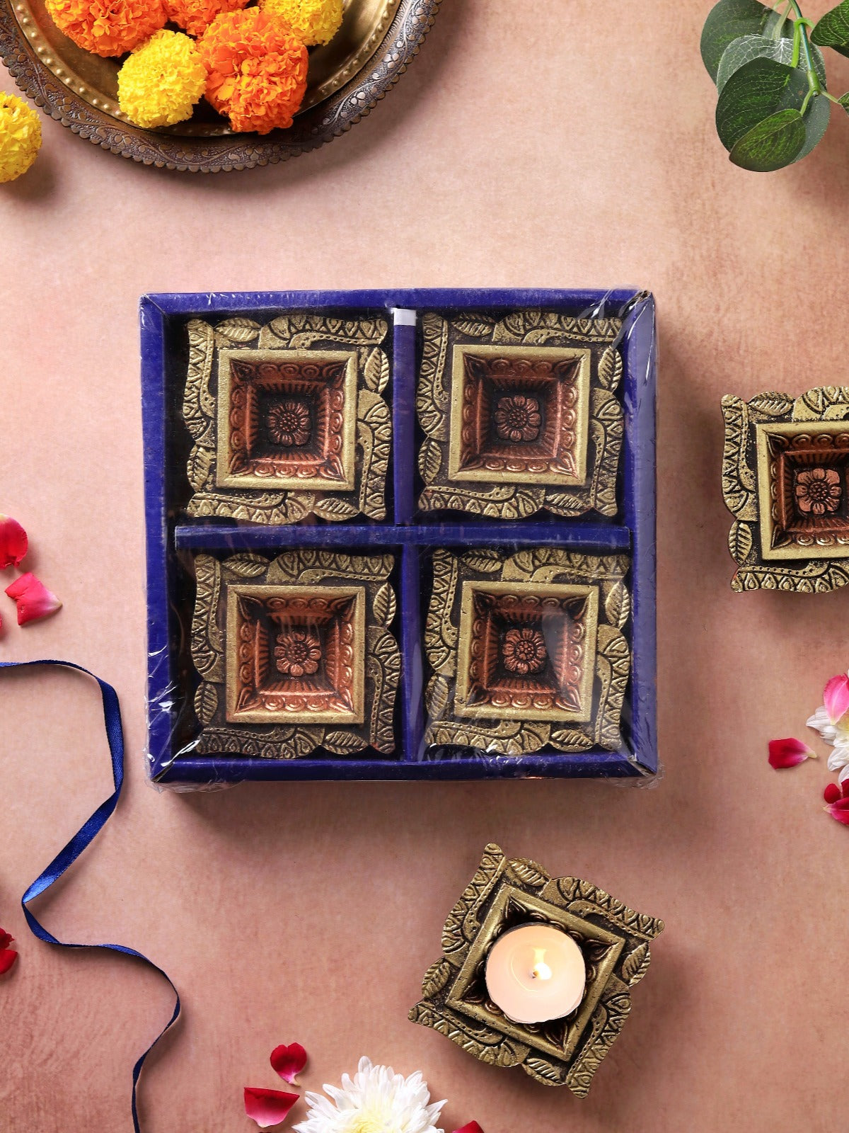 Handcrafted with care, this Swastik-inspired terracotta diya set embodies tradition and festive grace. Perfectly designed to light up your celebrations, each diya adds a radiant, warm glow to any table or altar. Eco-friendly, artisanal, and elegant, it blends cultural symbolism with timeless beauty.