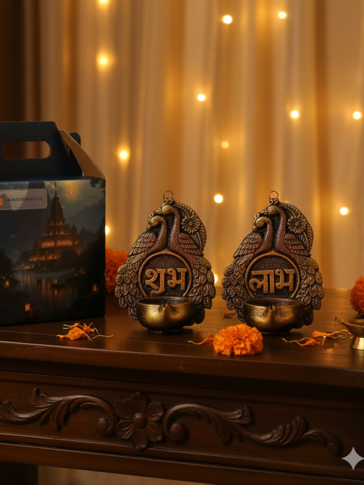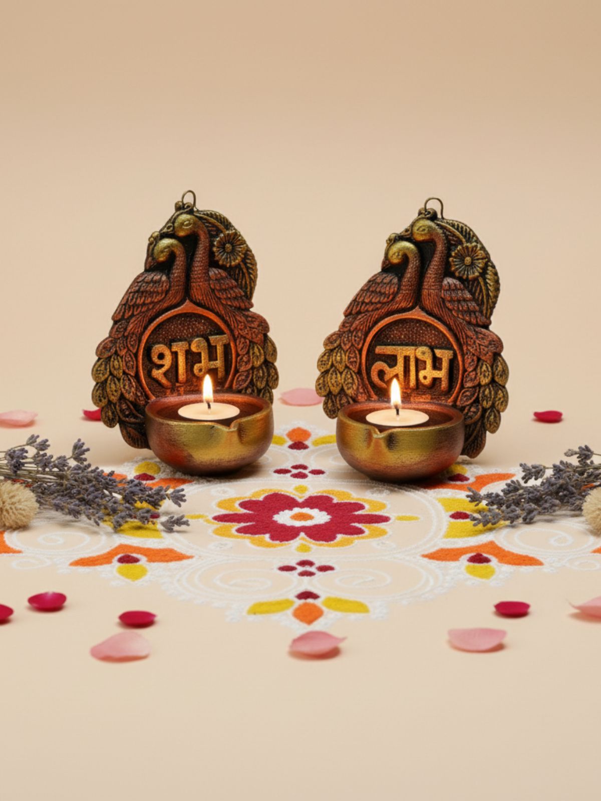 Decorative plaques, wall hangings, or rangoli designs with 'Peacock' are commonly used to welcome Goddess Lakshmi (the goddess of wealth) and Lord Ganesha (the remover of obstacles), ensuring that prosperity enters the household or workplace in a pure and sacred form. Thus, "Shubh Labh" is not merely a wish for profit, but a blessing for abundance, positivity, and good fortune in all aspects of life."