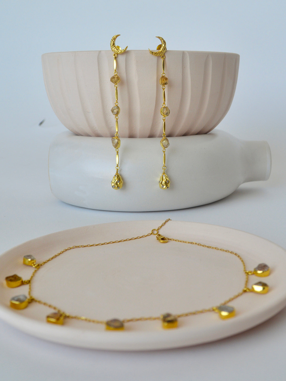 A perfect pair that enchant elegance with its amalgamation of pearl and stones. The crescent moon adds a charm to the piece. Slide it with your casual outfits or amp up your occasion wear.