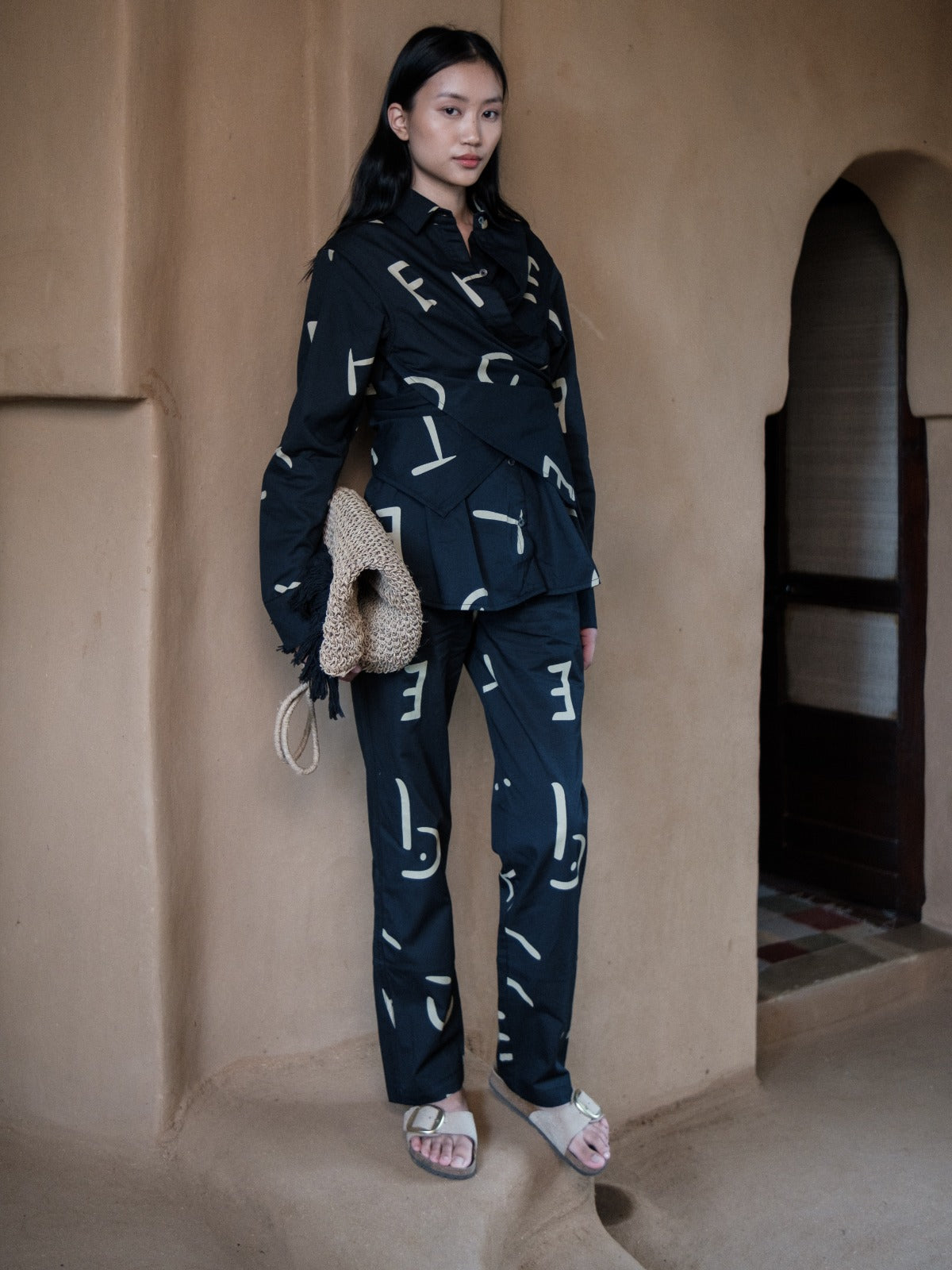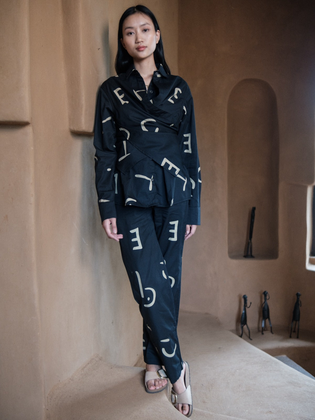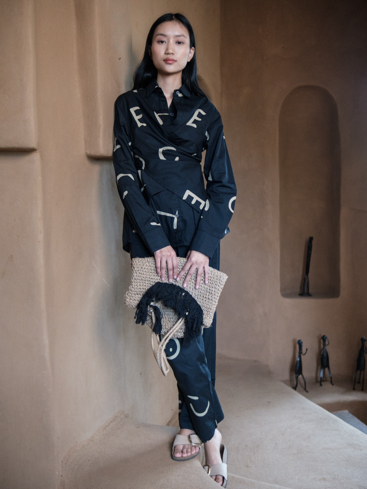 The Black Line Printed Seattle Wrap Shirt offers versatile elegance, effortlessly shifting from a relaxed oversized shirt to a refined fitted dress shirt. Its unique wrap design adapts to your style needs, providing seamless transition from daytime comfort to evening sophistication. Ideal for those who demand both functionality and polished aesthetics in their wardrobe.