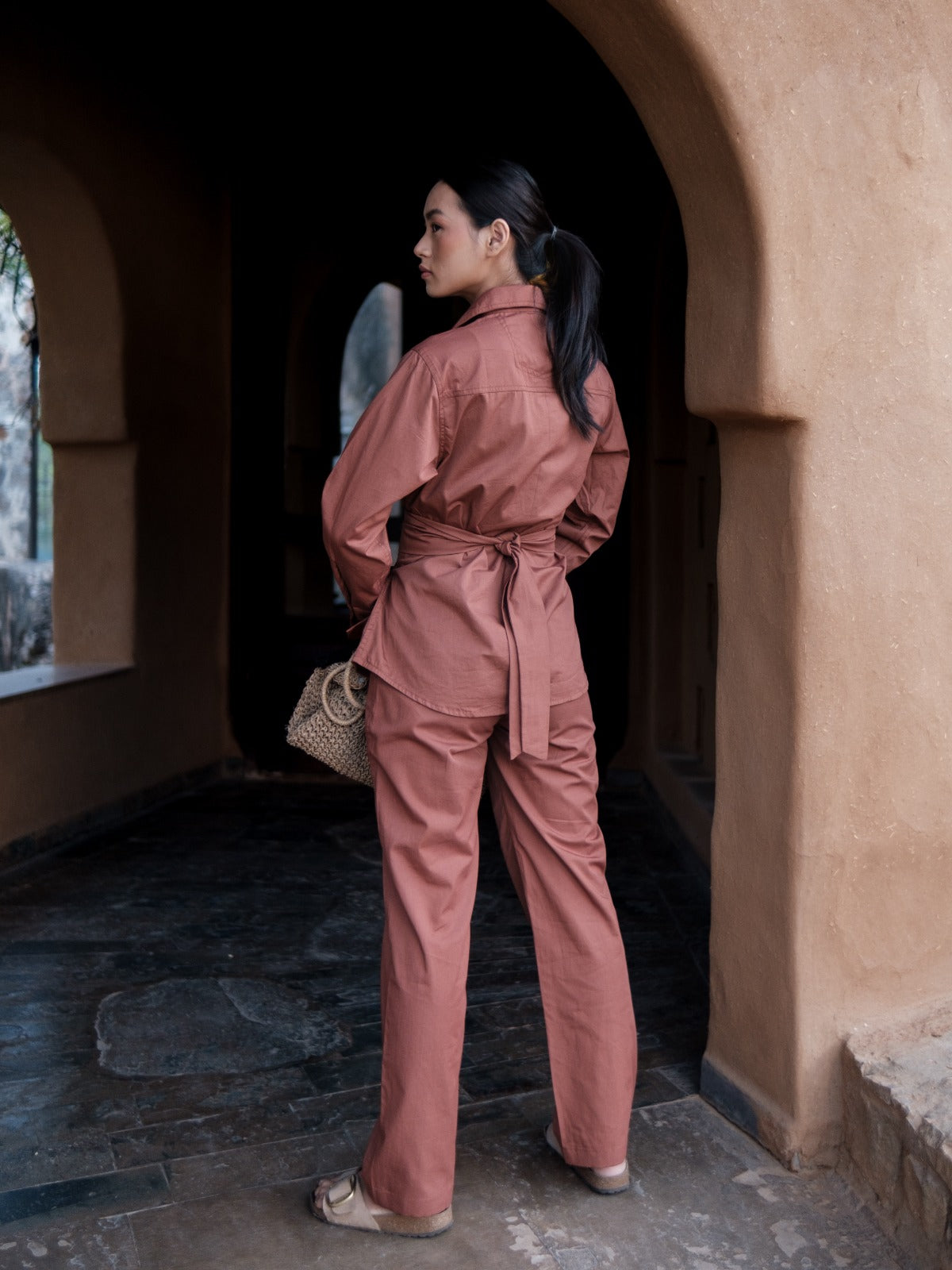 This shirt features a front tie-up design that seamlessly elevates a basic shirt into an elegant fashion piece. It combines style with exceptional comfort, making it an ideal choice for those seeking both sophistication and ease in their wardrobe. The front knot adds a contemporary touch without compromising wearability.