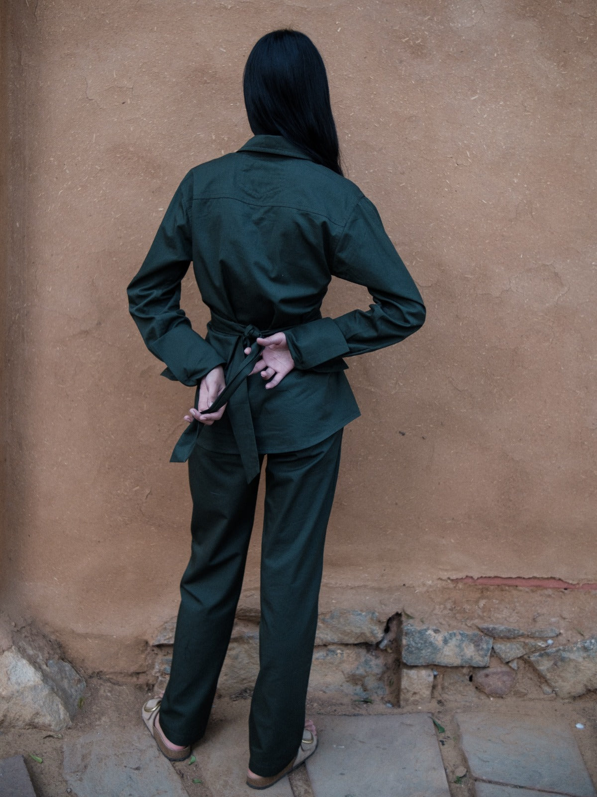 This deep green shirt showcases a stylish front knot that redefines a simple top into a refined fashion piece. Designed for both elegance and comfort, it offers a sophisticated touch without compromising ease of wear, making it a versatile addition to any wardrobe.