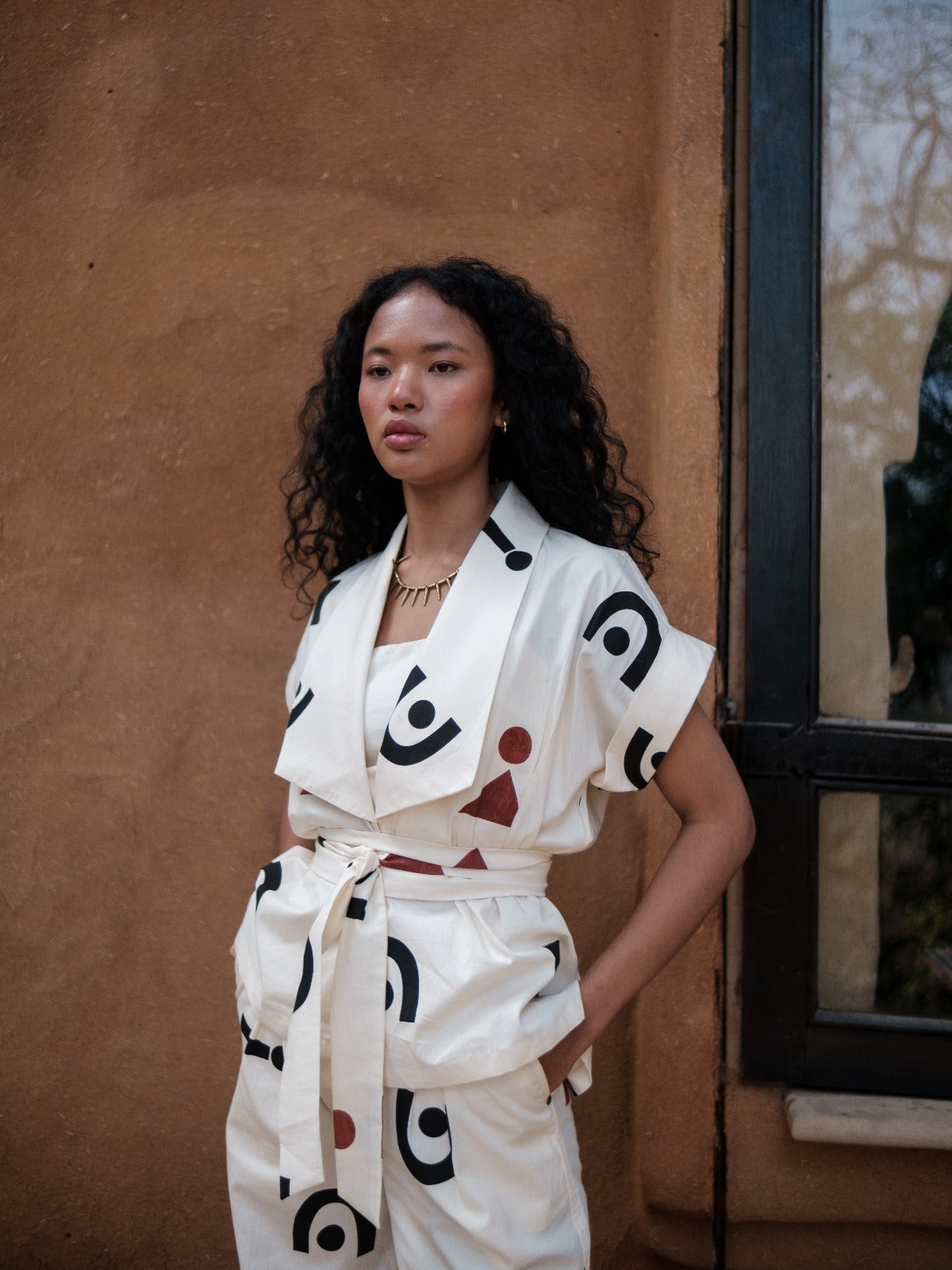 This summer jacket with a shawl collar highlights contrasting piping and a distinctive belt, designed to elevate any outfit with sophistication. Its unique details make it a standout piece, perfect for making a lasting impression in any setting.