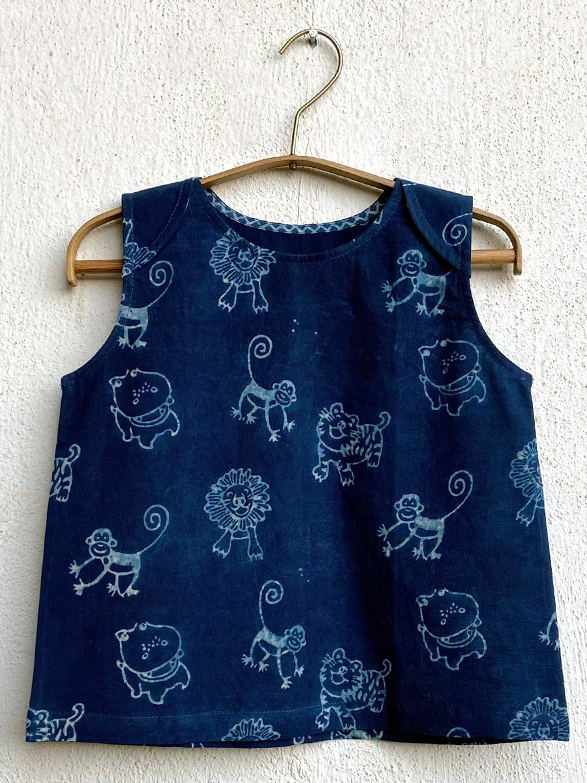 Introducing our Organic Zoo Jhabla With Check Pants Indigo, crafted with care for your little one's comfort. Made in India from eco-friendly materials, each set includes a sleeveless jhabla top and elasticated pants, both 100% organic cotton. Hand block printed with traditional Ajrakh designs in hypoallergenic indigo.