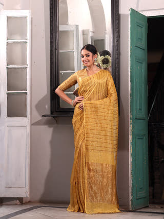 Sarika Heritage Hand Block Printed Pure Cotton Striped Saree