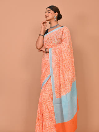 Saanjh Heritage Sanganeri Hand Block Printed Pure Cotton Saree