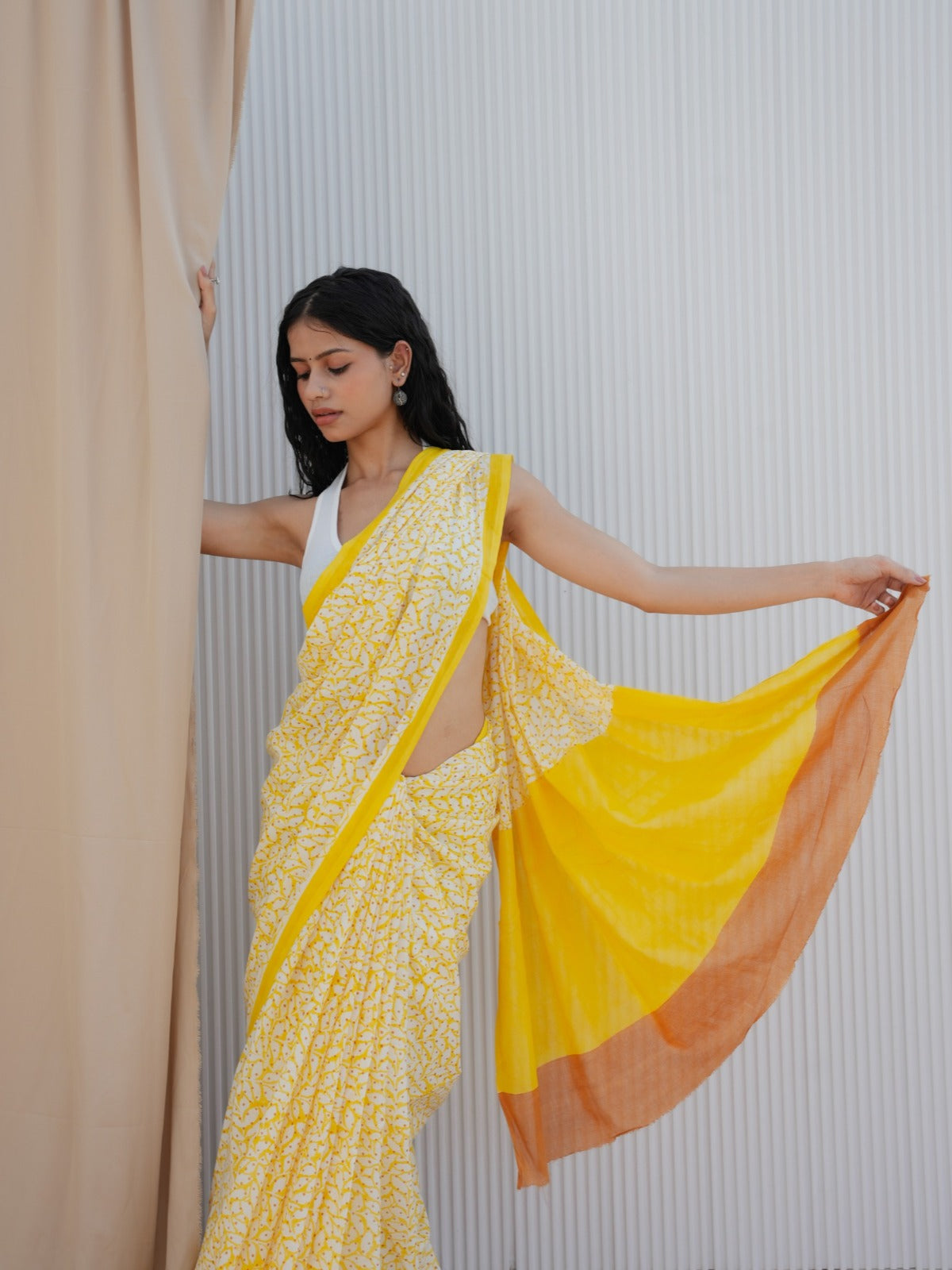 Pure cotton comfort meets heritage artistry in this hand block printed saree. Crafted by Jaipur’s National Award-Winning artisans with natural dyes and historic techniques, it delivers fluid drape and refined simplicity—perfect for graceful, everyday elegance.