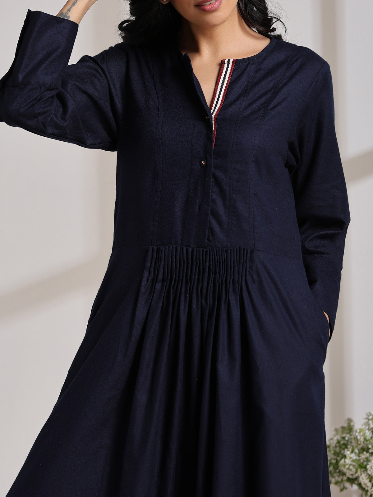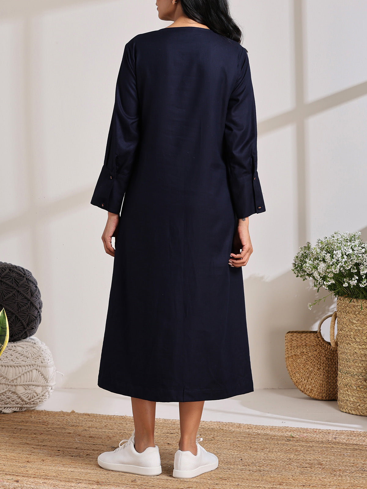 Get ready for summer fun in this relaxed dress in a classic navy blue. Has a tape detail on the placket.