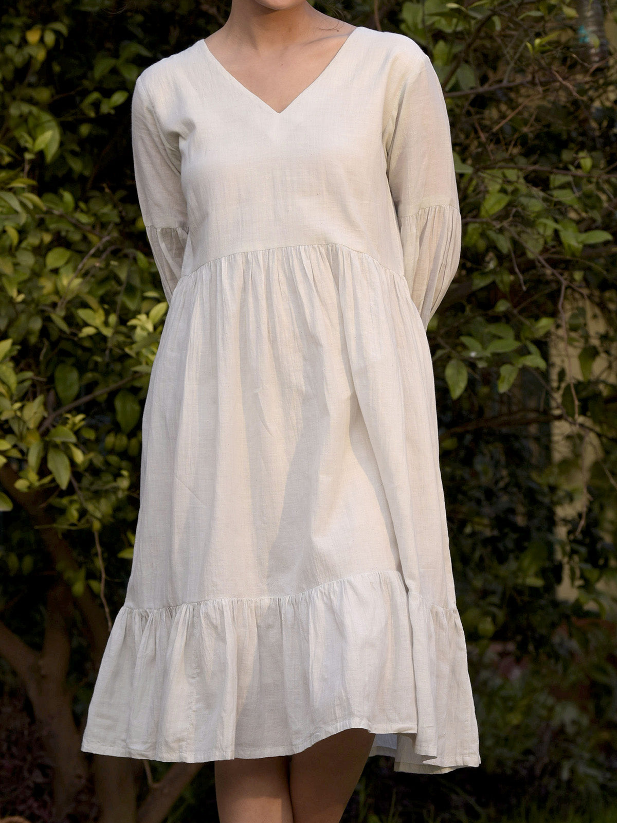 Immerse yourself in the purest type of emotion with this white cotton dress. Handmade with care, this dress embodies a sense of purity and elegance. The full sleeves add a touch of sophistication, while the lightweight fabric ensures comfort even on the warmest of summer Working Days. Embrace the simplicity and beauty of this dress as it captures the essence of summertime, offering an exquisite and timeless look.
