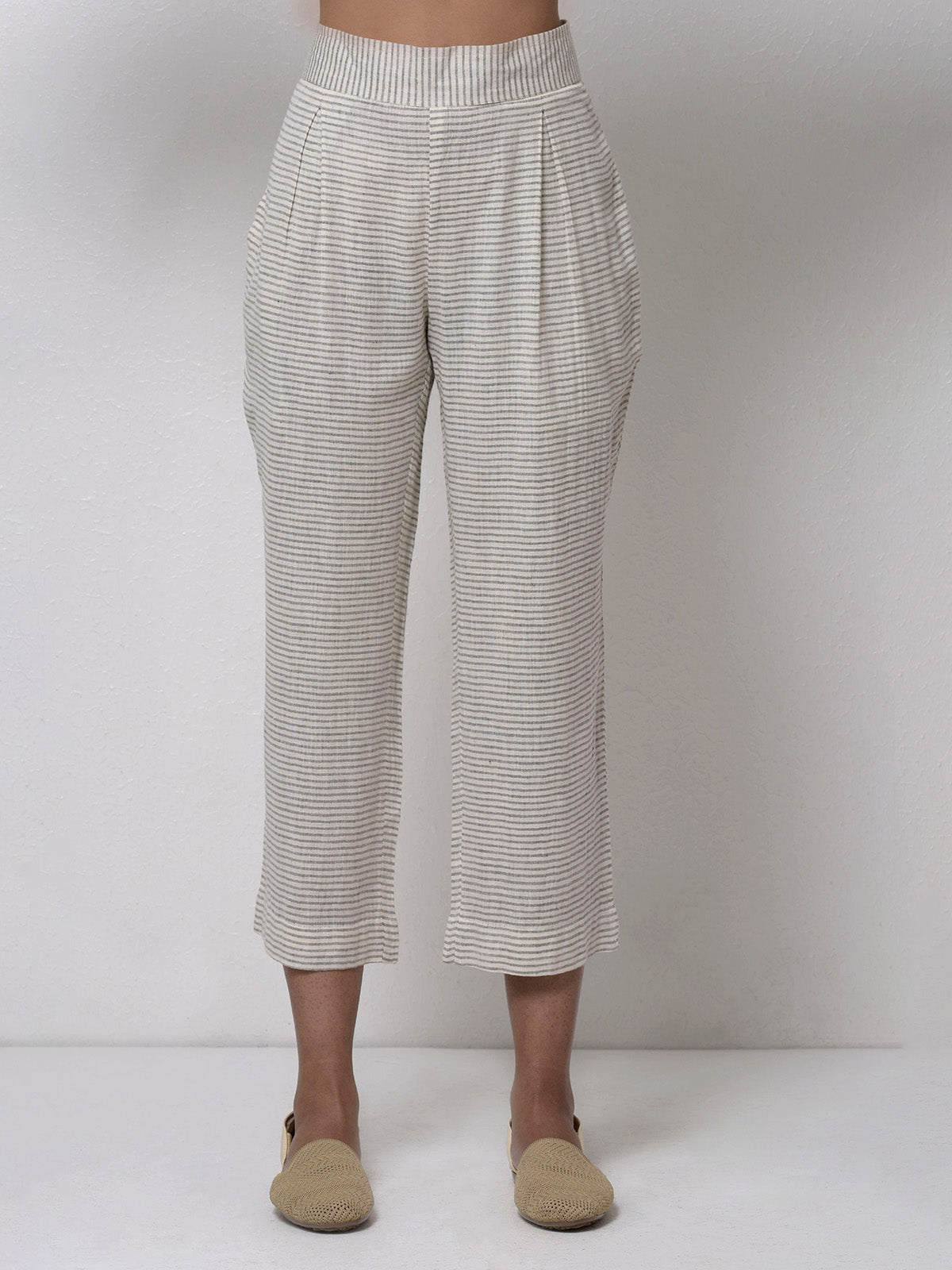Whether you're dressing up for a special occasion or keeping it casual for a day out, these handwoven striped cotton trousers are the perfect choice for a stylish and comfortable look.