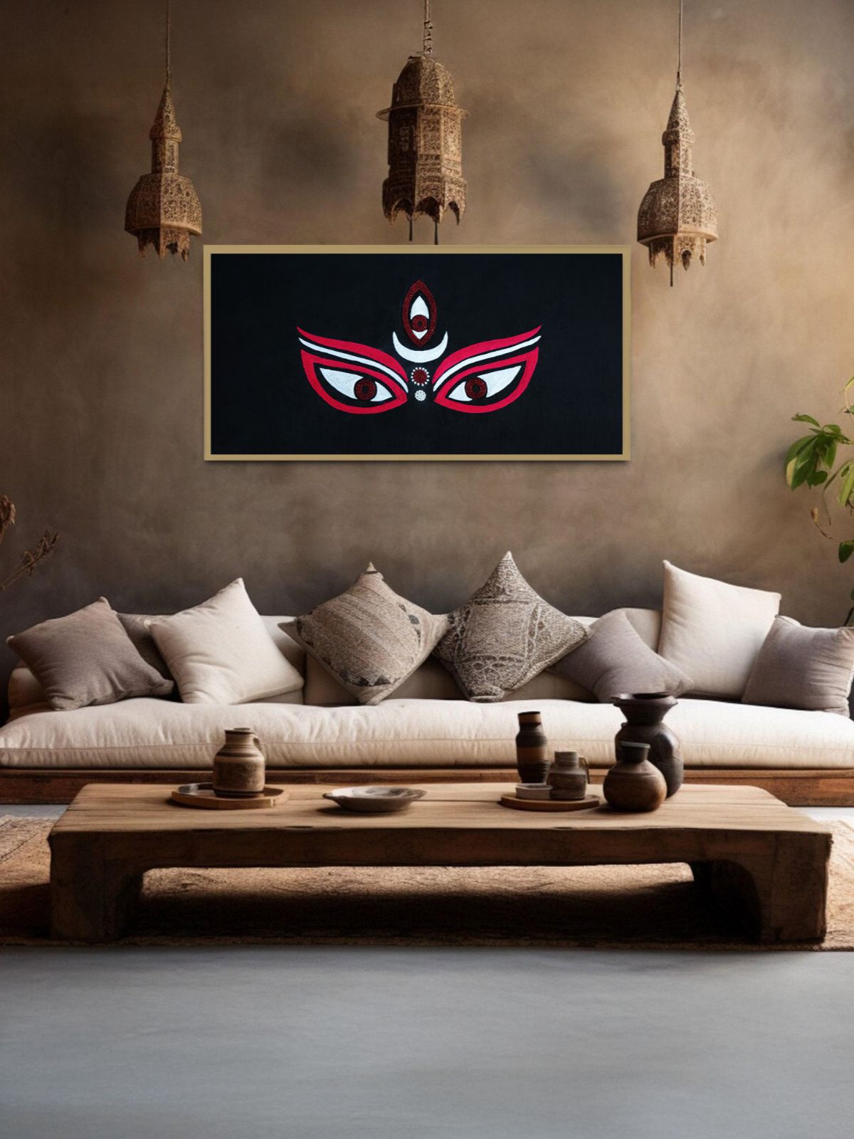 A striking ode to the power and protection of the Divine Mother, the Adishakti Kaali Wall Art channels strength and transformation. Crafted on luxurious raw silk with intricate aari embroidery and beadwork, it radiates depth and dynamism. The goddess’s commanding presence embodies courage, resilience, and protection. Perfect for a central wall or meditation space, this vertical artwork infuses your home with fierce grace and divine energy.
