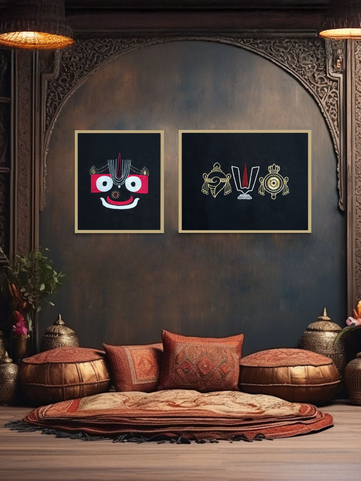 A modern homage to the beloved Lord of the Universe, the Lord Jagannath Wall Art celebrates inclusivity, compassion, and devotion. Rendered on raw silk with intricate aari embroidery and bead detailing, the piece radiates warmth and serenity. Compact yet impactful, it brings a sacred charm to any living, entry, or prayer space. Designed for modern interiors, it’s a timeless symbol of divine presence and harmony.