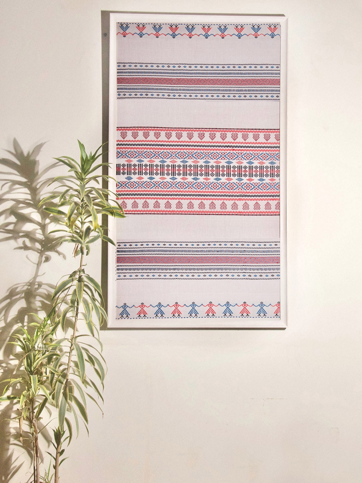 Please note: Due to its handwoven nature, slight variations in color, texture, design, and finish may occur.The textile artwork is supplied in folded form without the frame.