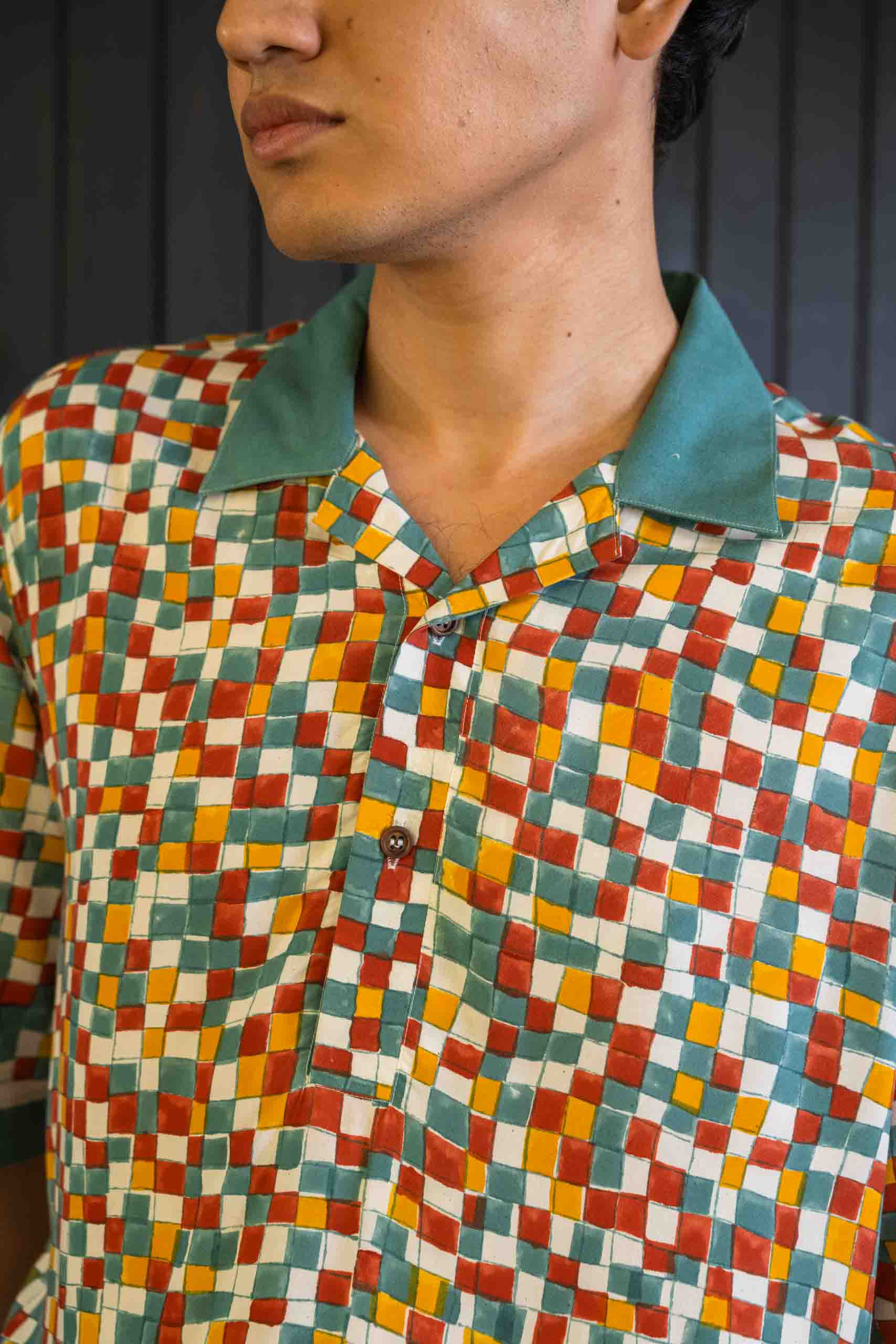 This relaxed micro modal polo balances crisp tailoring with playful artistry. Featuring a camp collar, polo placket, wooden buttons, and a hand-illustrated back motif, it combines breathability, polish, and character. Effortlessly comfortable and refined, it offers unique, wearable expression for modern wardrobes, blending contemporary style with artisanal charm.