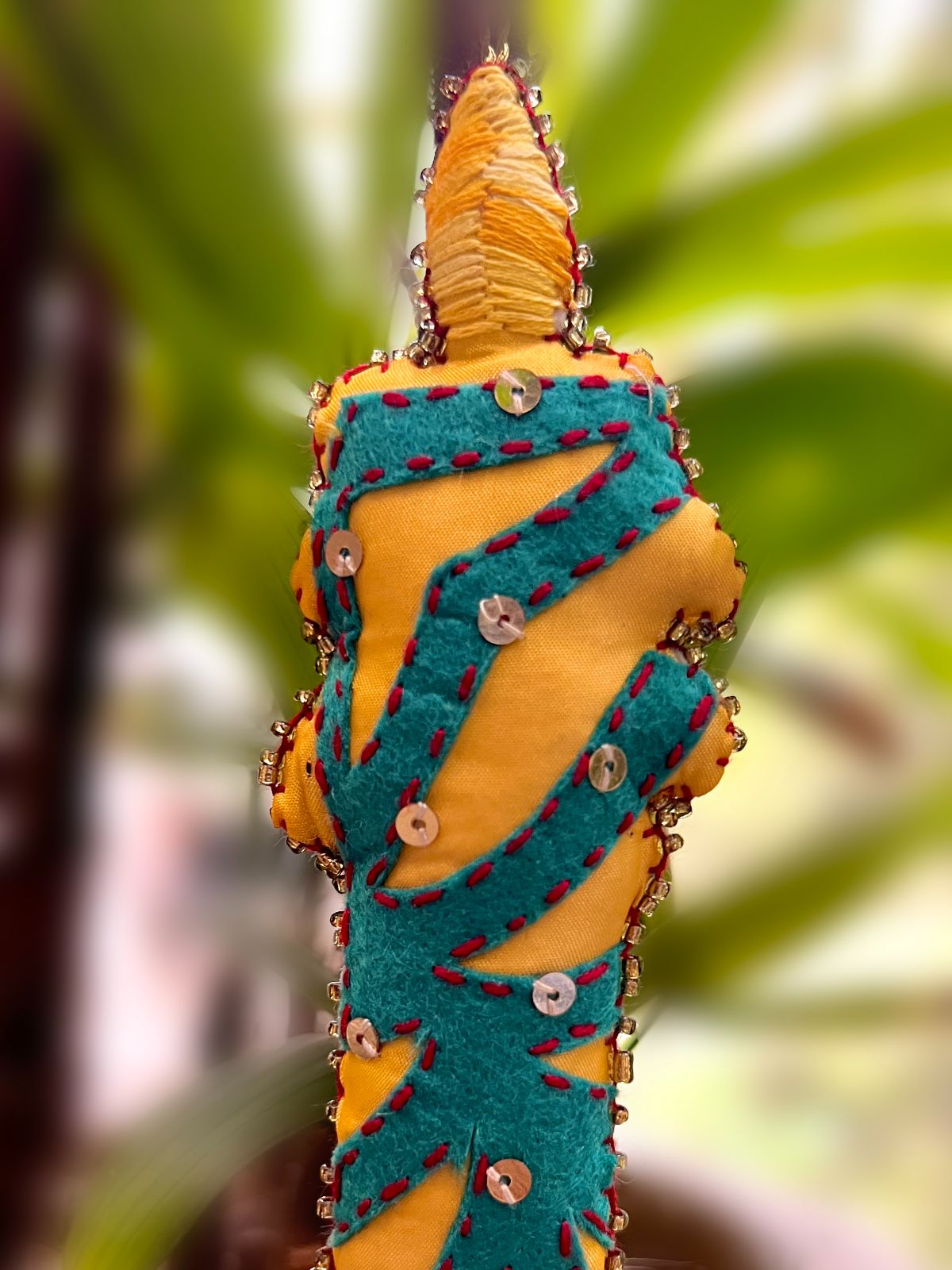 - Material: Recycled Poly Felt | Upcycled Fabric Scrapes | Cotton Embroidery Threads | Glass Beads | Ghungru | Sequins | Poly Silk Threads | Poly Fibre