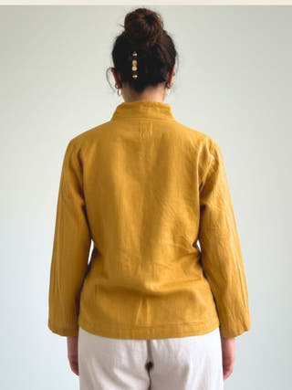 Wrap Top Mustard Cotton-Linen Tie-Up Front