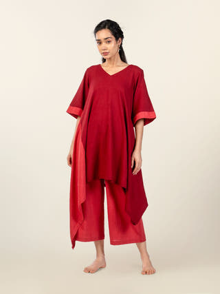 Omra Midi Tunic with Cowls and Uneven Hemline