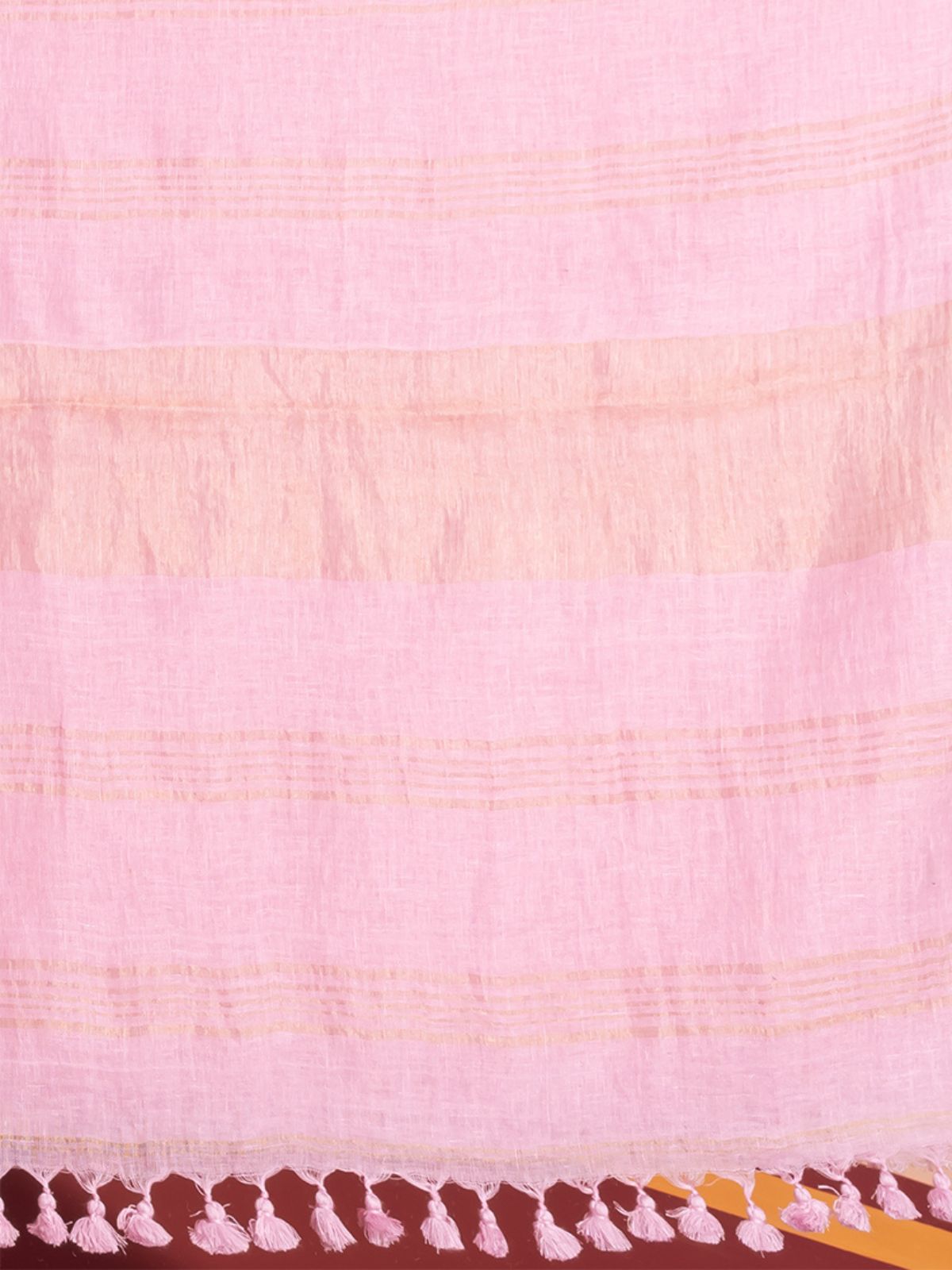Linen Bloom Pure Linen Solid Saree With Zari Border | Pink