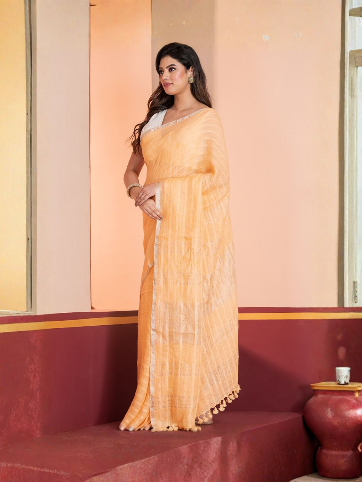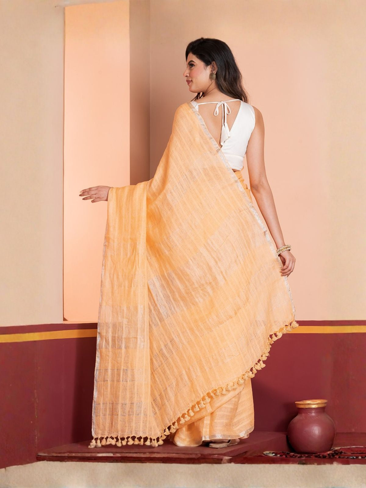 Sun Mist Pure Linen Striped Saree | Pastel Yellow