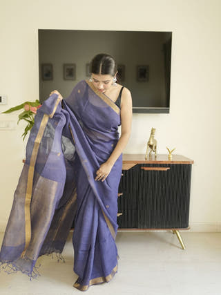 Purple Linen Silk Saree With Zari Border