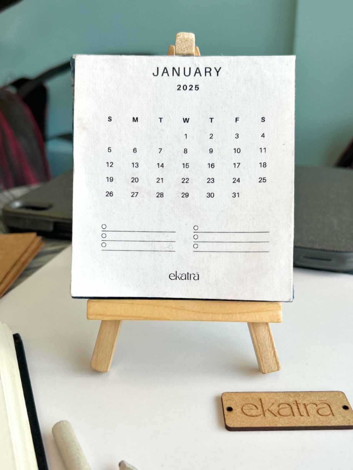 Introducing 2024 calendar – a fusion of functionality and artistry. Crafted with a sustainable bamboo paper and finished wooden stand, each page is meticulously pressed by hand. Elevate your space with this unique blend of natural materials and artisanal craftsmanship.