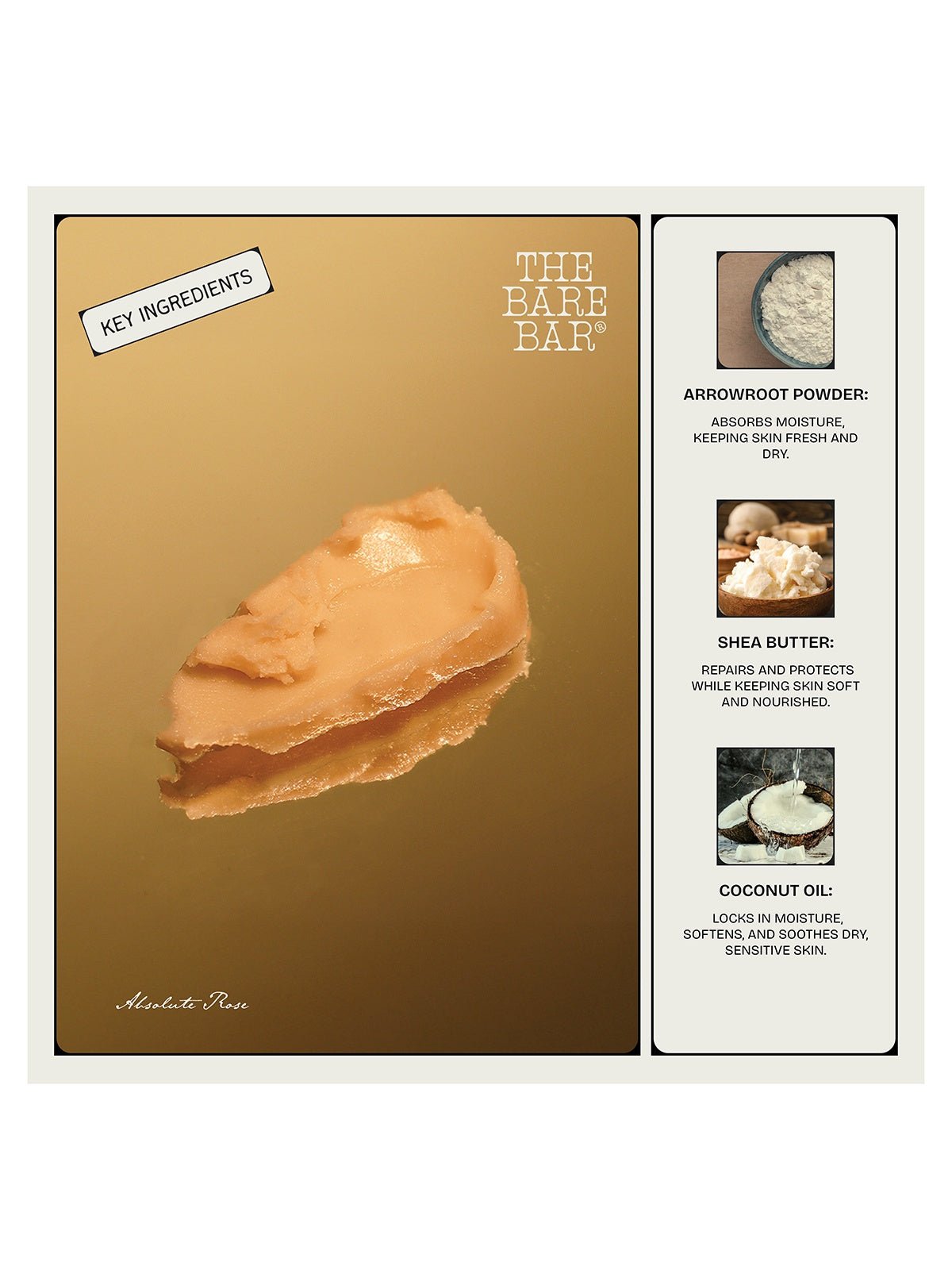 - Key Ingredients : Maranta arundinacea (Arrowroot) Powder, Cocos nucifera (Coconut) Oil, Vitellaria paradoxa (Shea) Butter, Magnifera indica (Mango) Butter, Copernicia cerifera (Carnauba) Wax, Euphorbia cerifera (Candelilla) Wax, Glycine soja (Soybean) Wax, Rosa Damascena (Rose) Flower Oil, Rose Clay, Sodium Bicarbonate, Vitamin E Acetate.