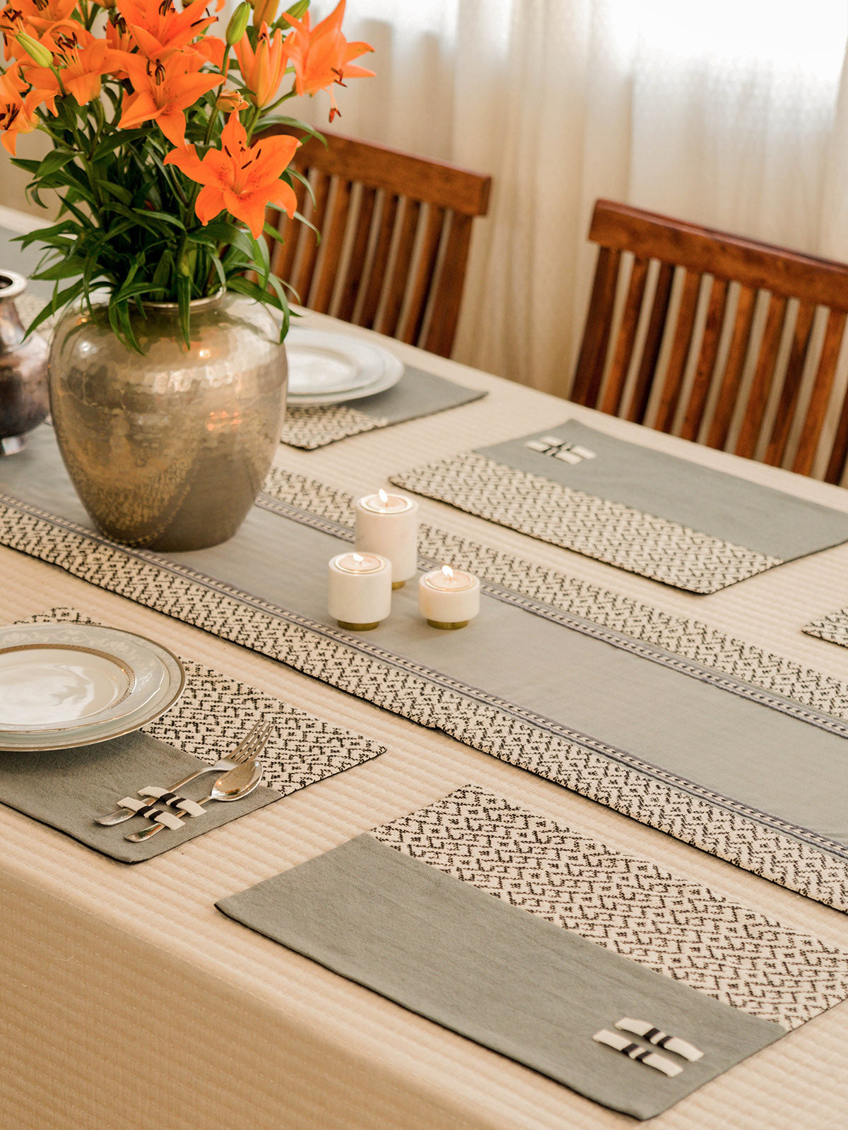 Aeolus Dining Set Of A Table Runner And 8 Table Mats Grey