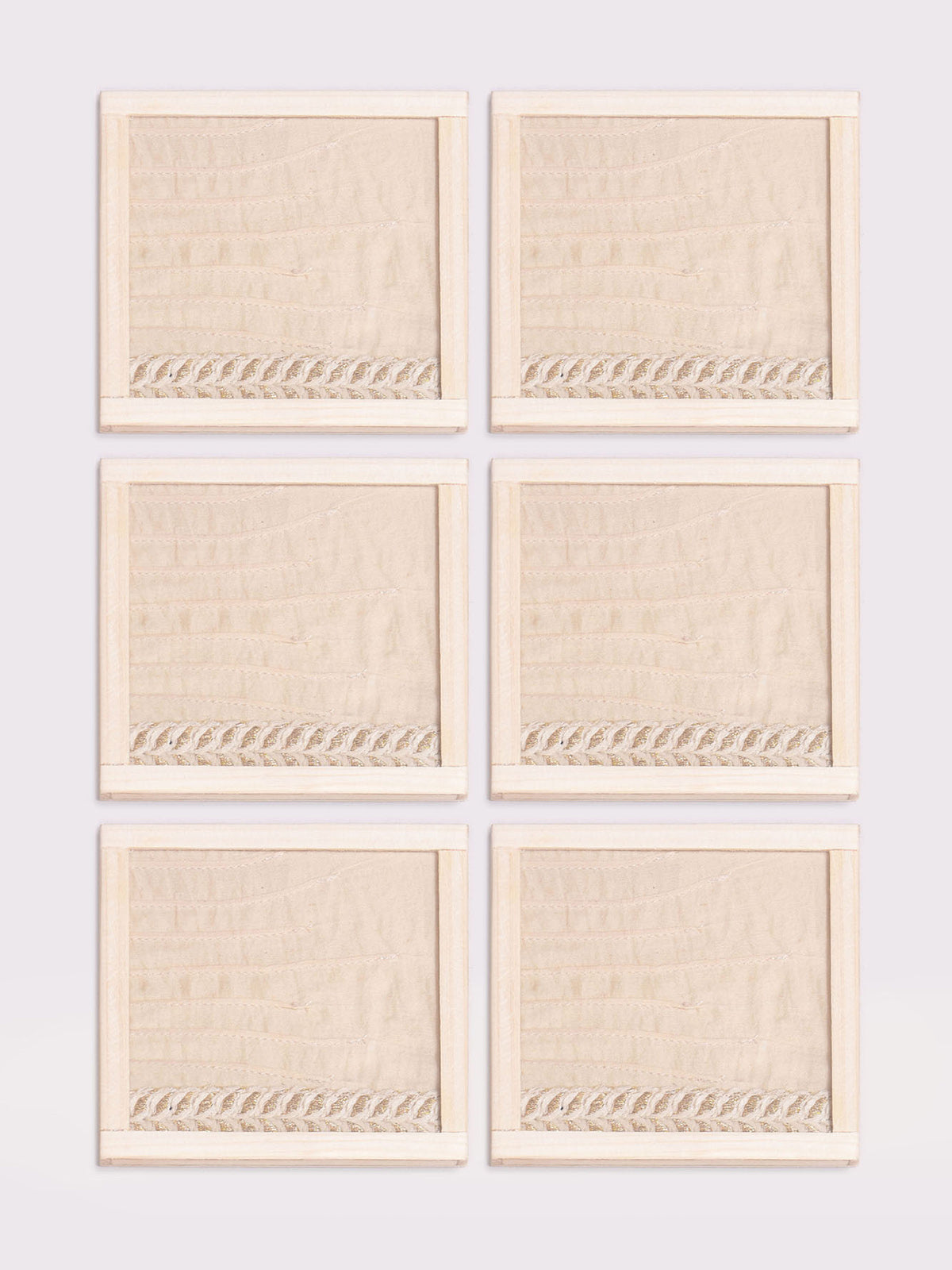 The Alabaster handwoven coasters, aptly named after the translation of "white," are the perfect addition to your summer brunch setup. Handcrafted with pure Dupion silk, these coasters exhibit intricate hand-artistry through exquisite pleats and hand-embroidered borders. They not only protect your surfaces but also add a touch of elegance to your table.