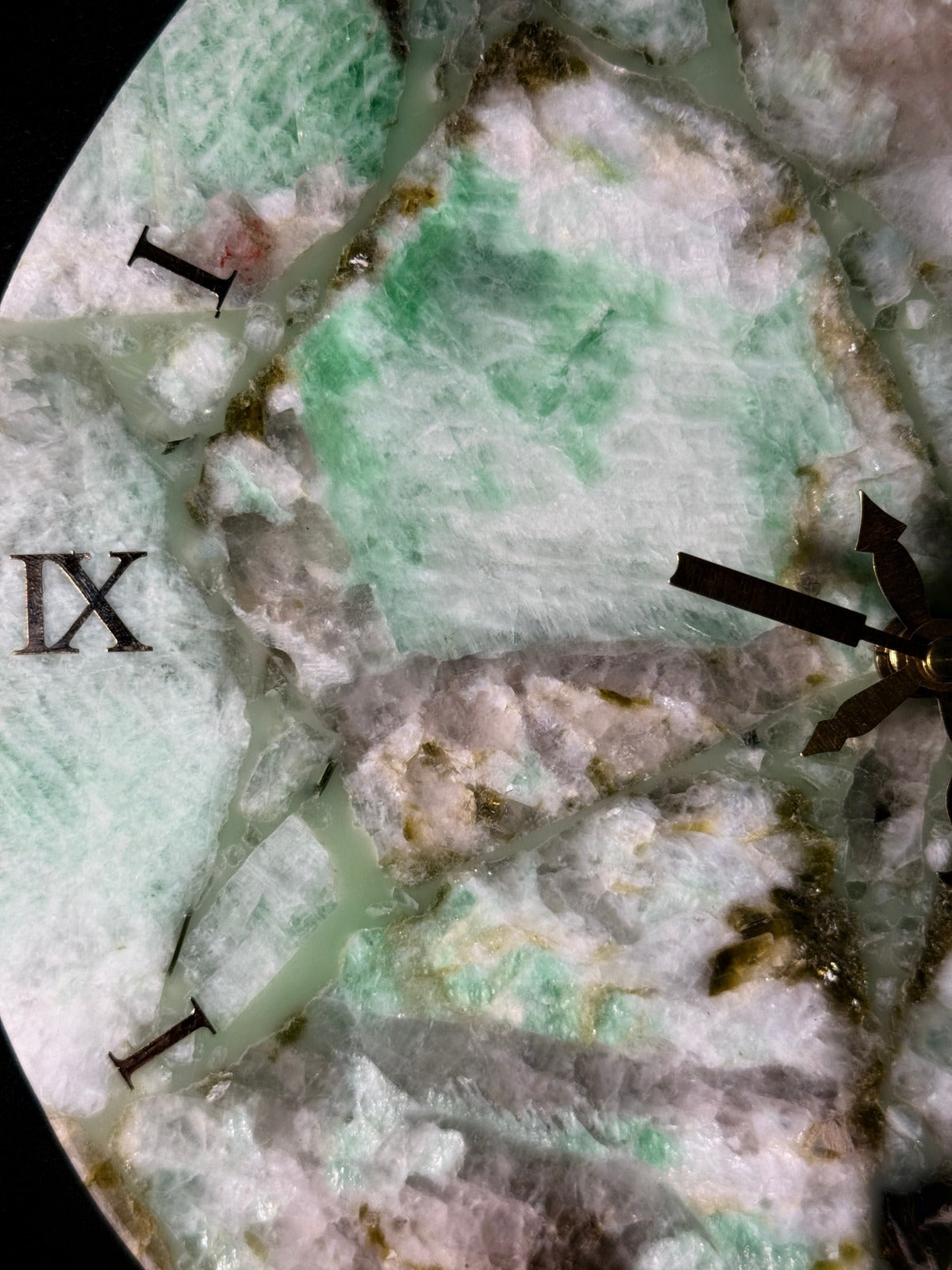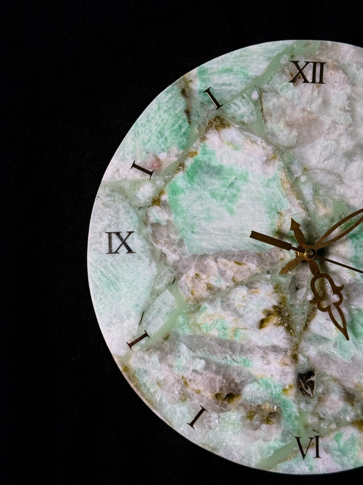 With soothing aqua-green tones, this Amazonite wall clock brings harmony, balance, and a calming energy to your space. Crafted from natural stone, it’s a functional piece of tranquility—perfect for bedrooms, meditation rooms, or workspaces.