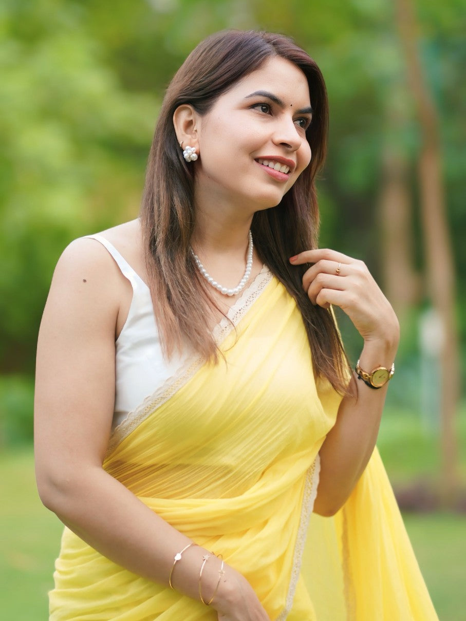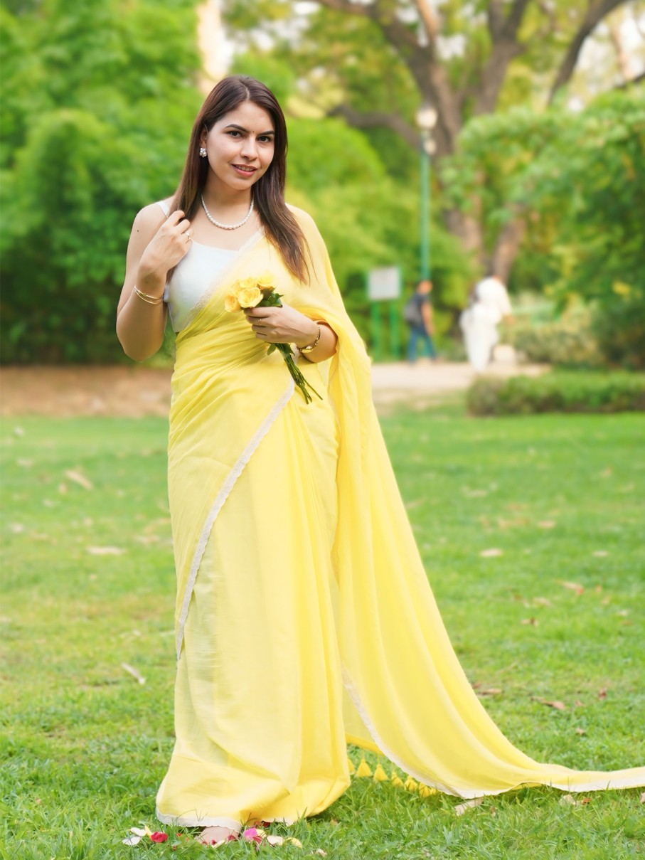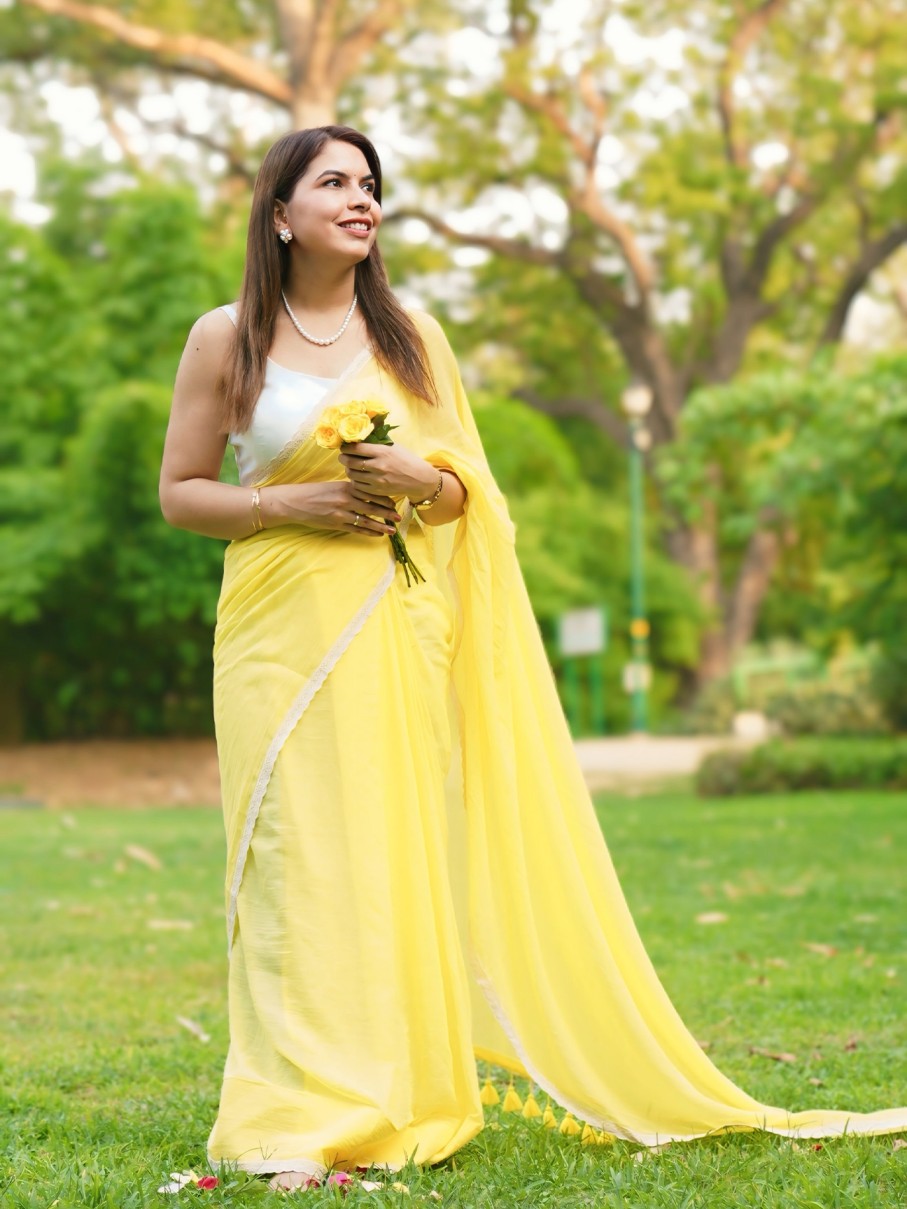 Amber Dew Pure Cotton Solid Saree With Lace Border Without Blouse Piece
