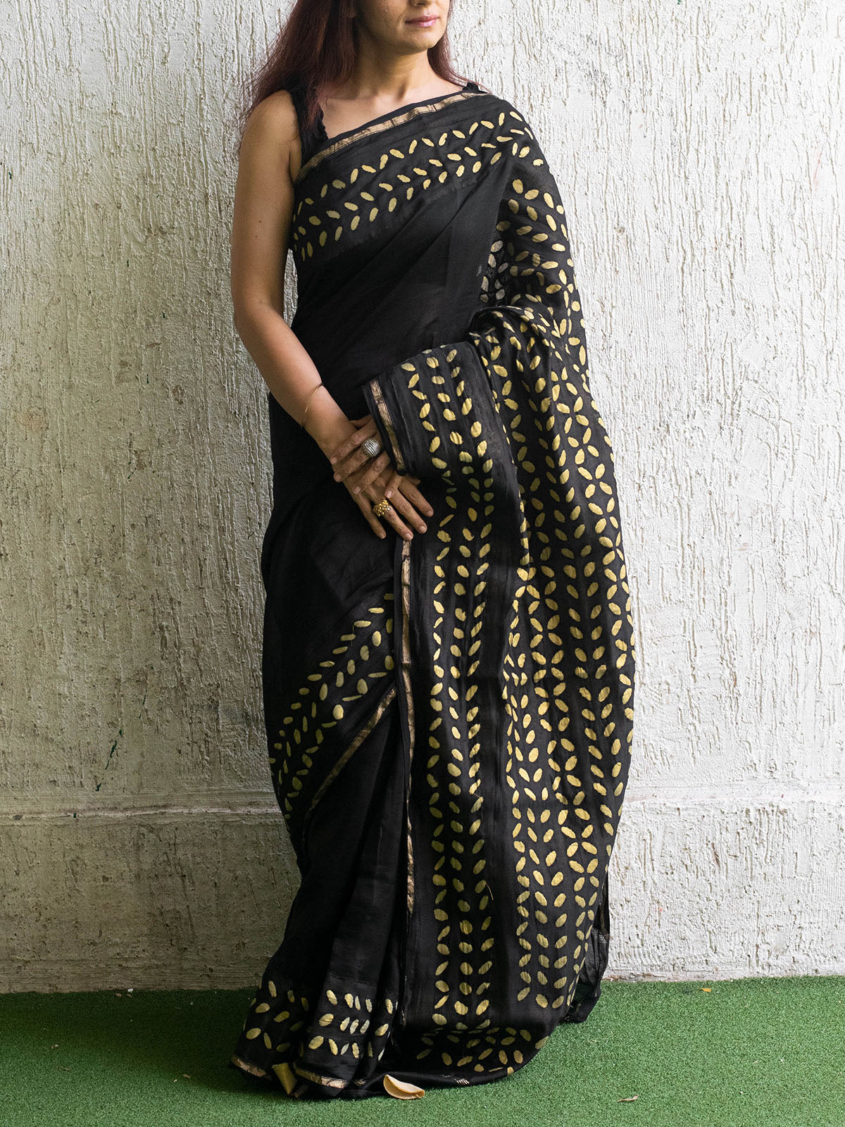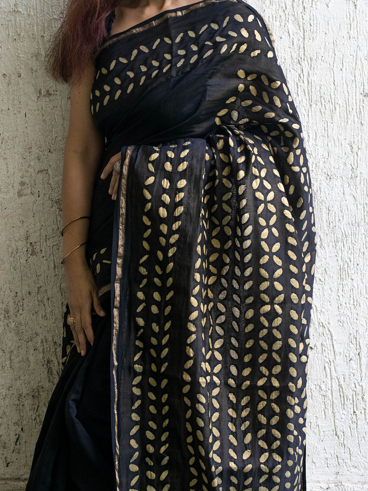 Experience the finesse of Pure Chanderi sarees, meticulously crafted with handcrafted cutwork applique technique. Utilizing leftover tissue fabrics, intricate patterns come to life on the base fabric, showcasing the skill of women artisans in Barmer's villages. Each piece is a testament to tradition, empowerment, and the artistry flourishing in Rajasthan.