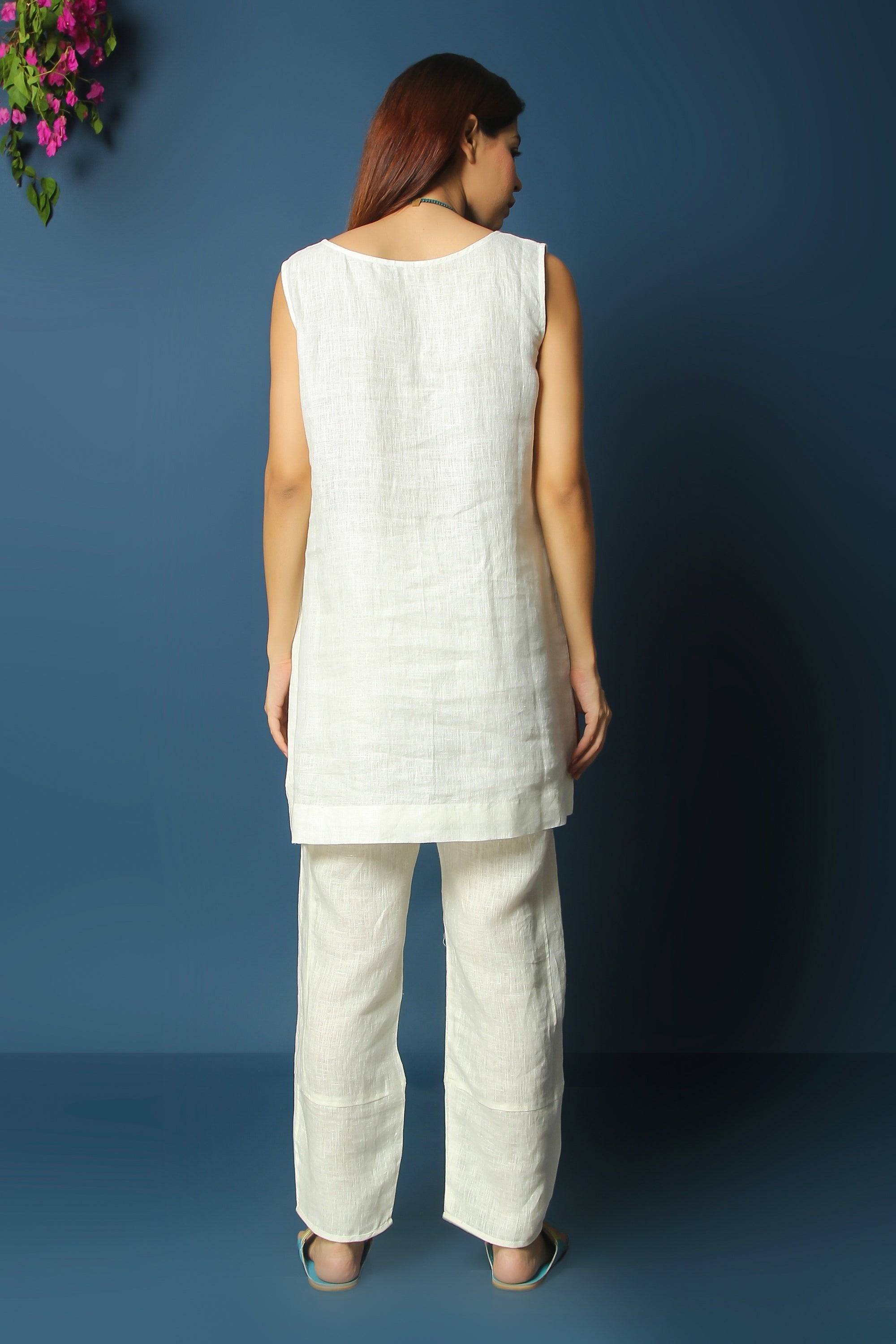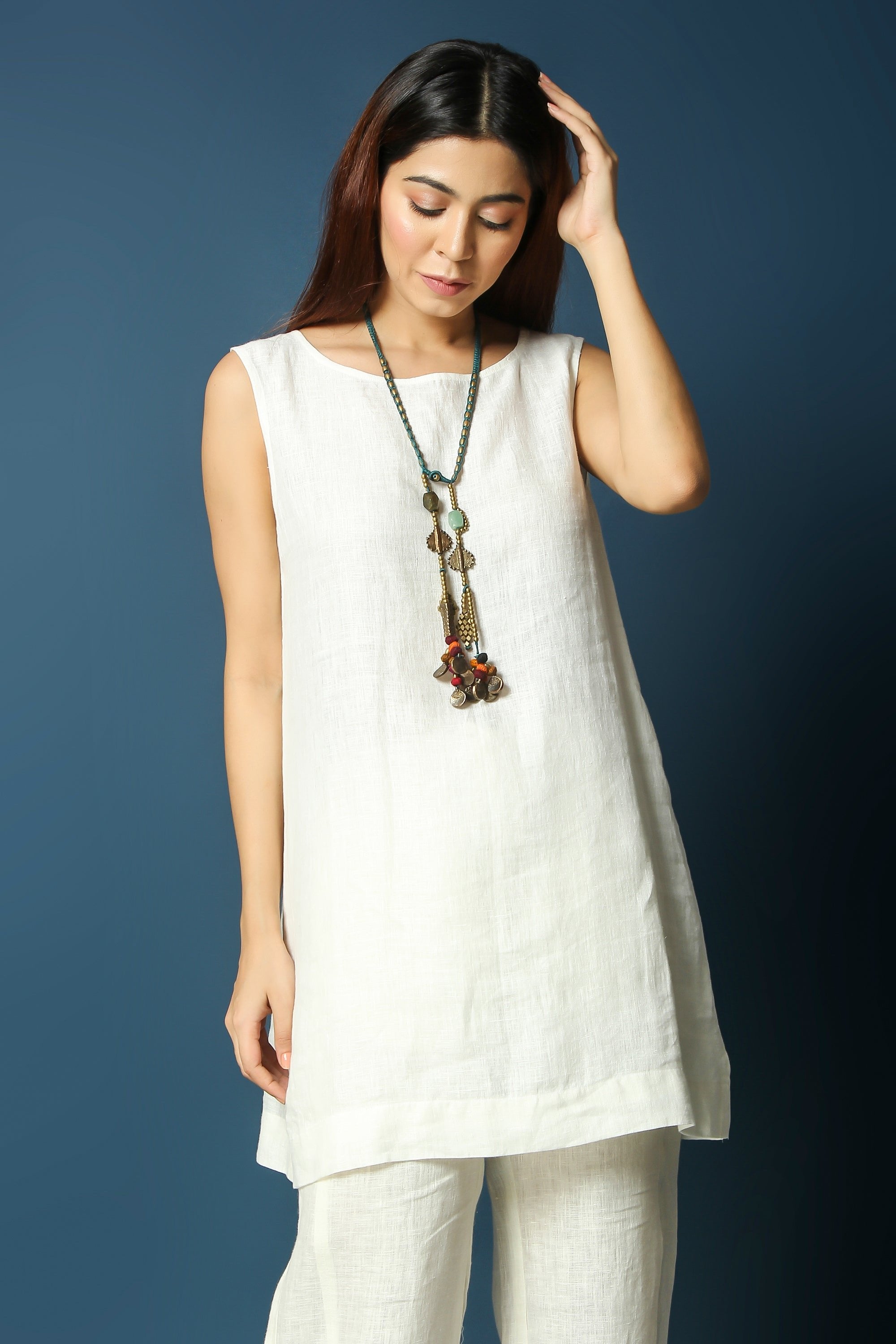 The Ava linen tunic is a sleeveless tunic in pure linen that can be paired with almost anything and everything. Paired with our linen trousers and an overlay can make a perfect relaxed matching set.