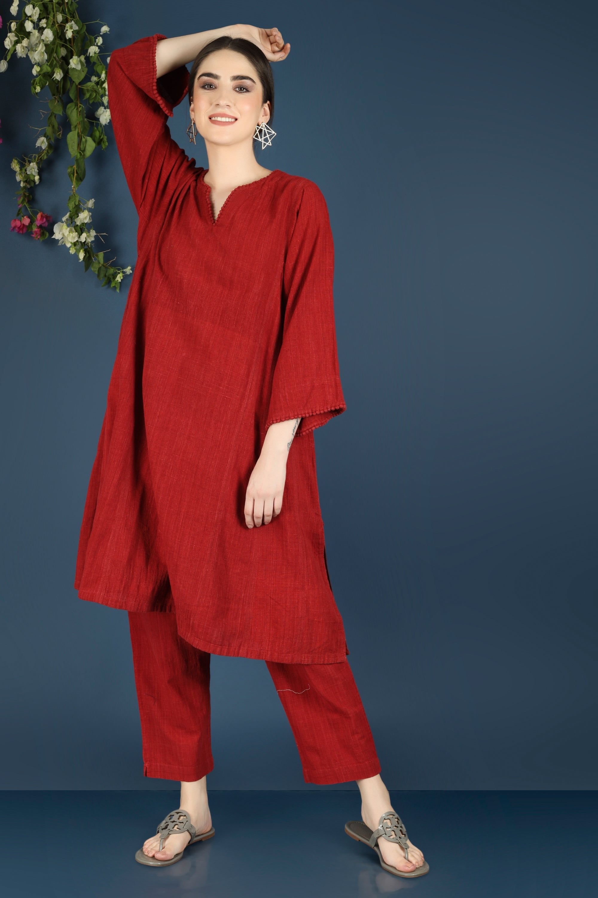 A beautiful co-ord set in with a hand detail on the neck line and sleeves. Comes with side pockets
